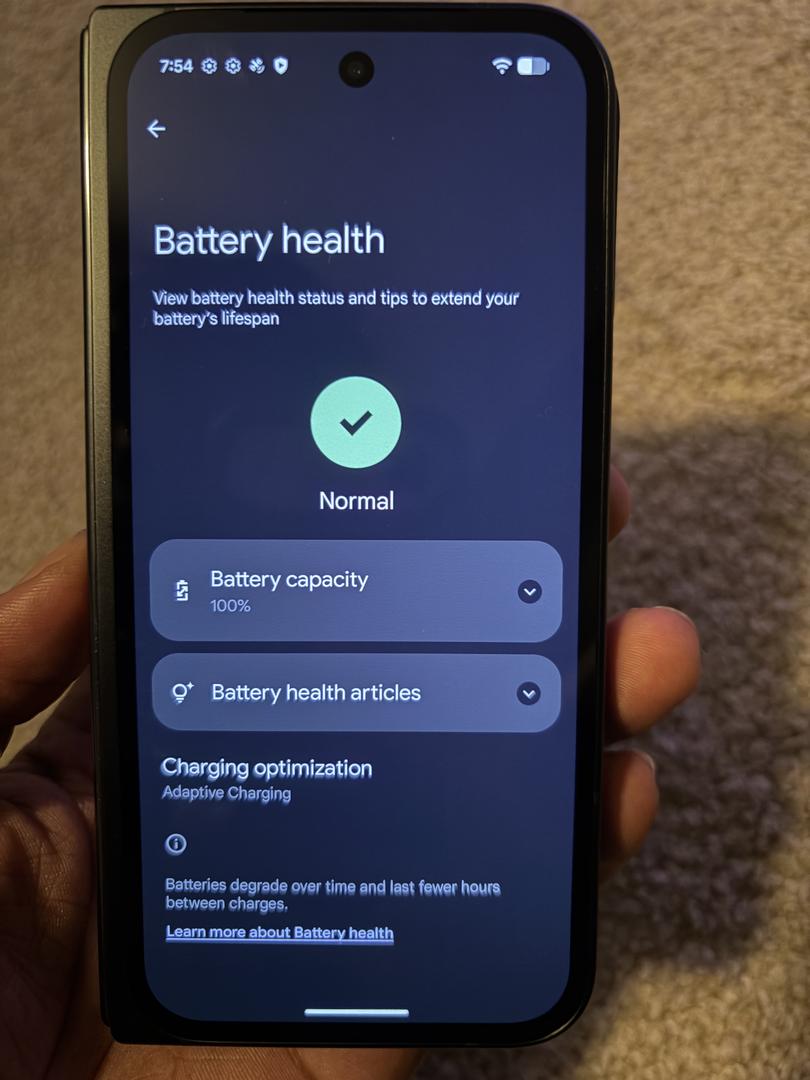 Battery health screen added to the pictures. 100% capacity.
