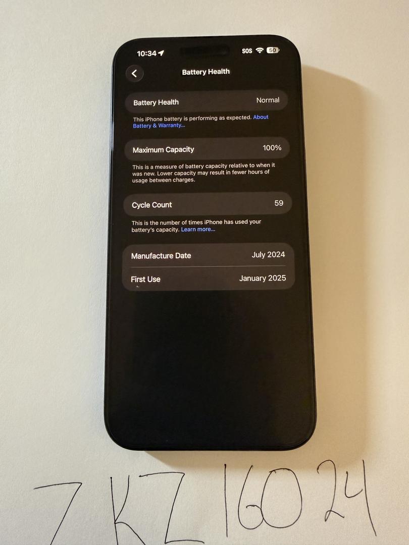 Battery health is 100% with 59 Cycle Count