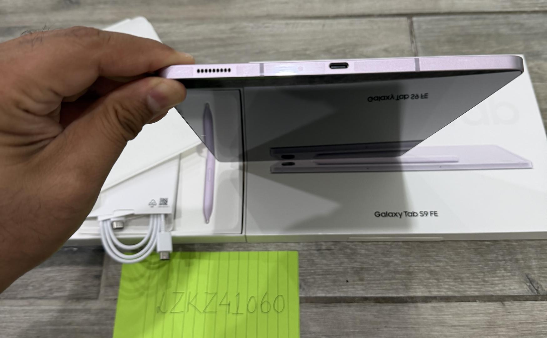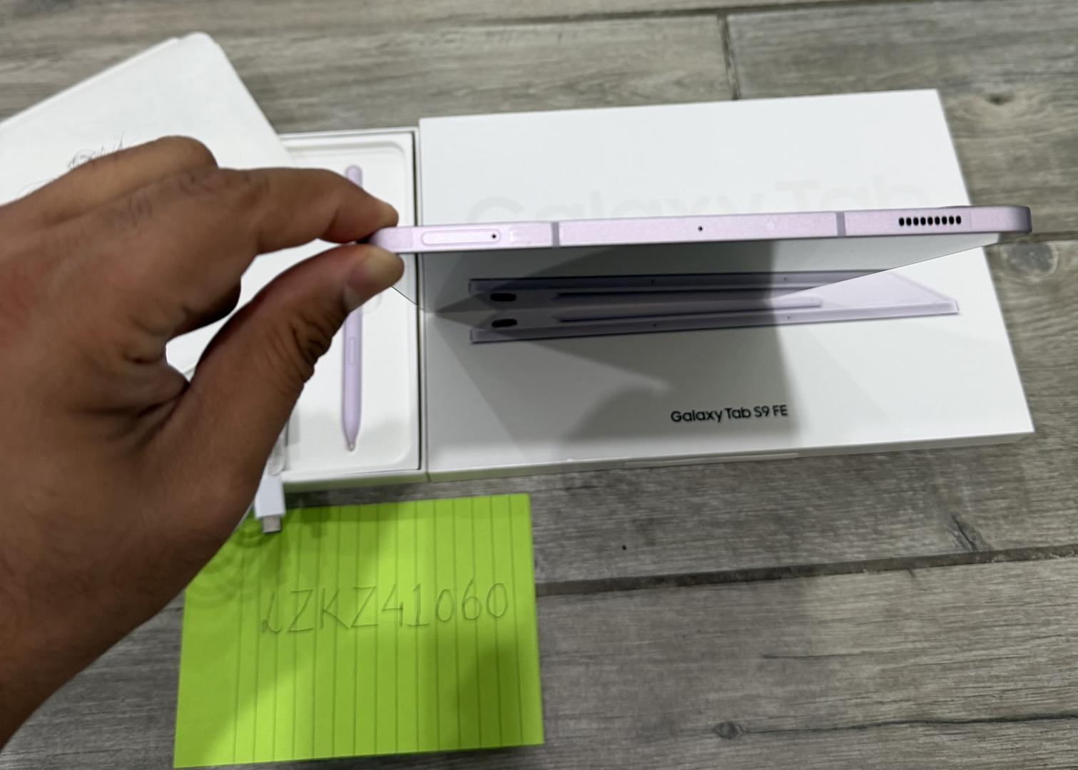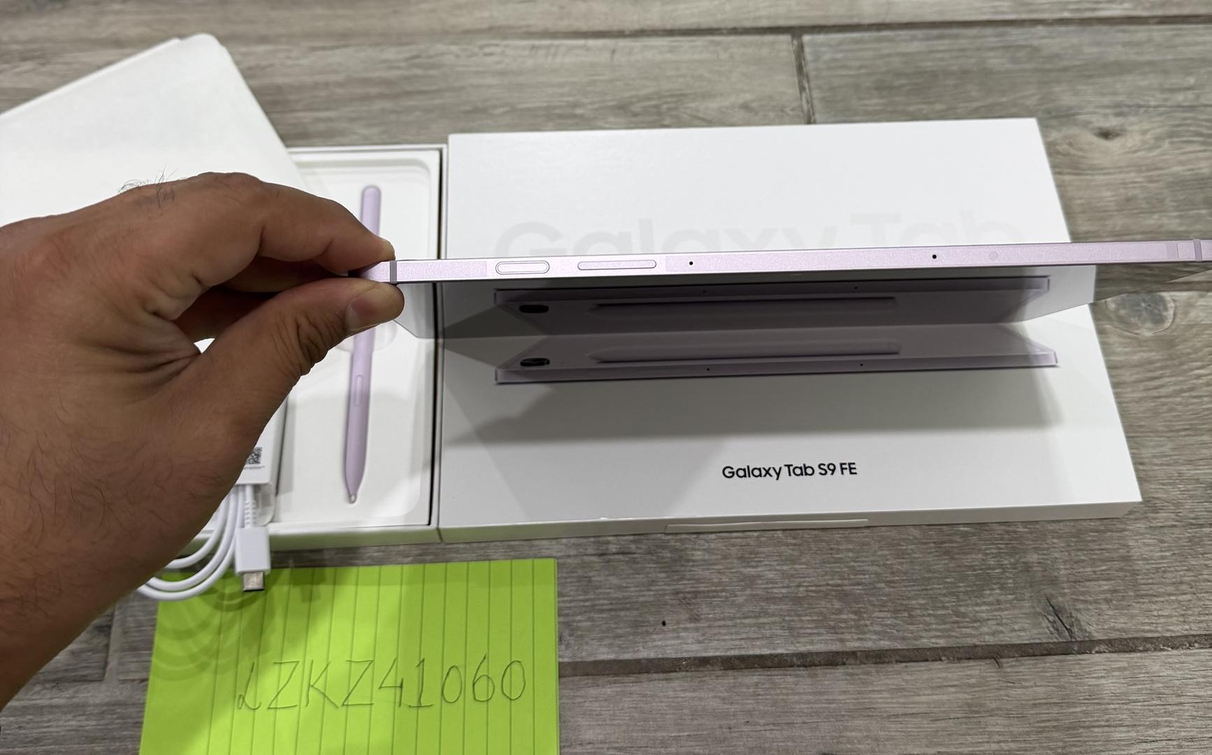 Mint condition Samsung Galaxy Tab S9 FE in lavender color for sale. 128GB storage. Hardly used 1-2 times only. All 4 sides of the tablet still has the plastic wrap attached just like it came brand new. Comes with S Pen, box, charging cable and all unused accessories. I’ll also send in 2 kid-friendly cases for the tablet if you want your kids to use the tablet.