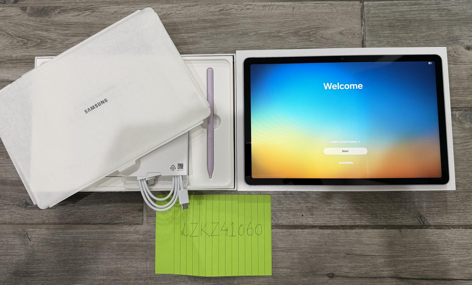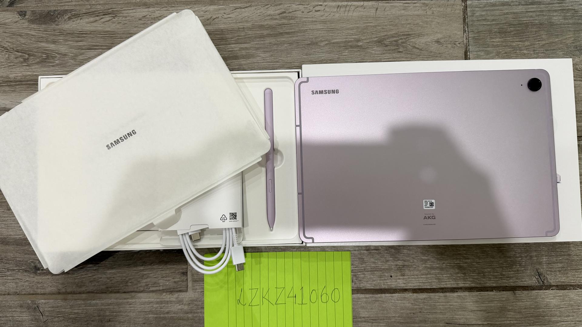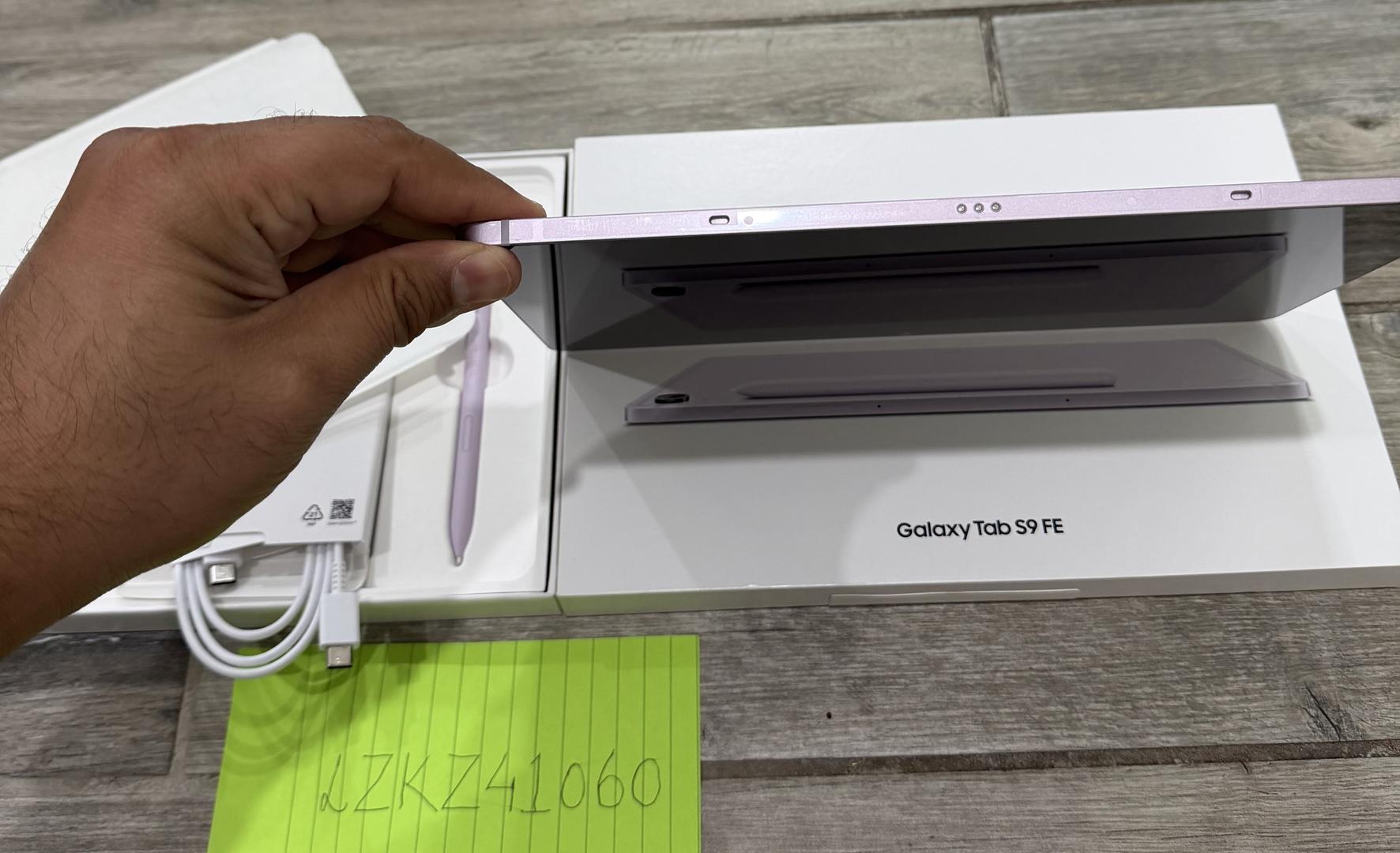 Mint condition Samsung Galaxy Tab S9 FE in lavender color for sale. 128GB storage. Hardly used 1-2 times only. All 4 sides of the tablet still has the plastic wrap attached just like it came brand new. Comes with S Pen, box, charging cable and all unused accessories. I’ll also send in 2 kid-friendly cases for the tablet if you want your kids to use the tablet.