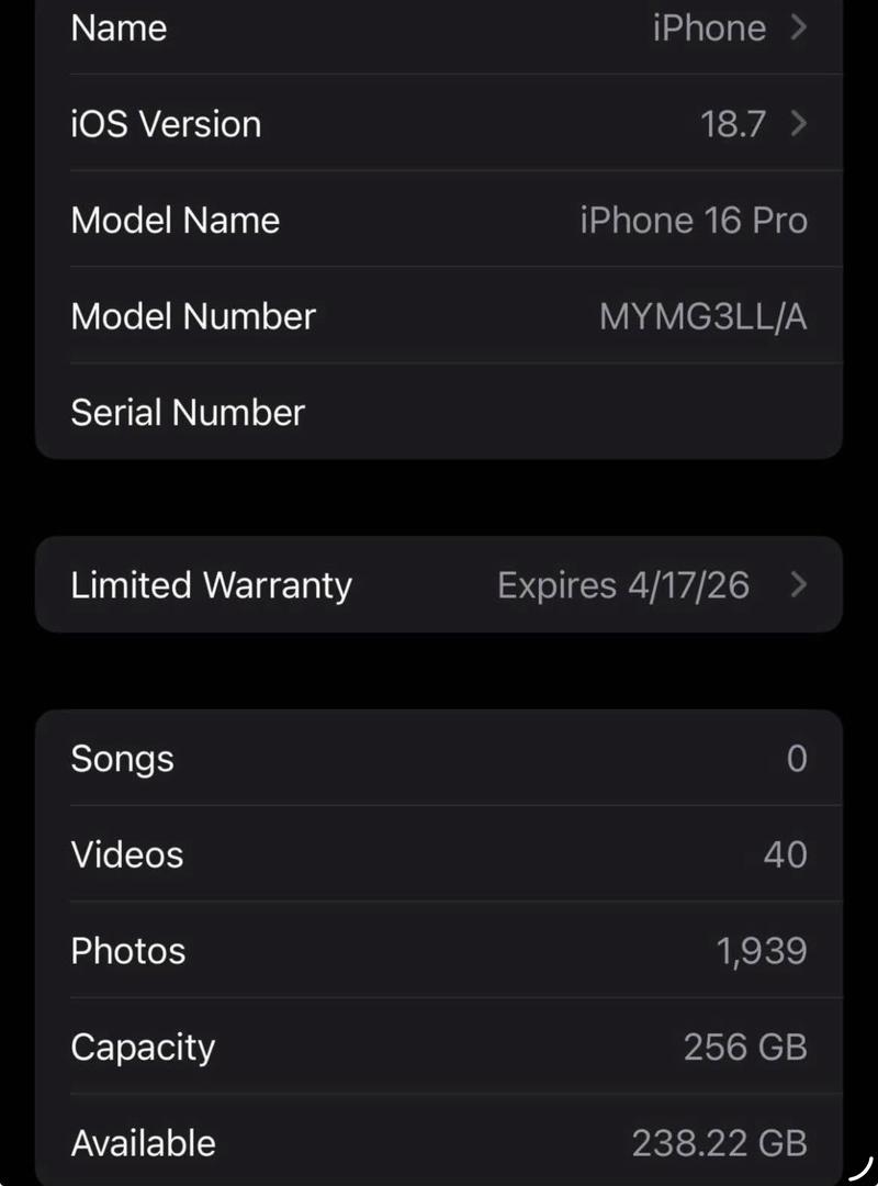 Operating System iOS 18.7