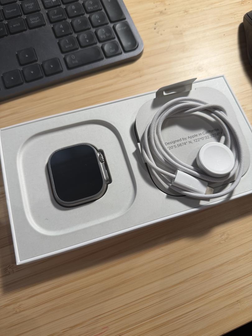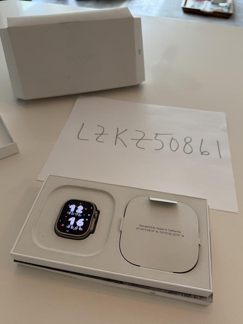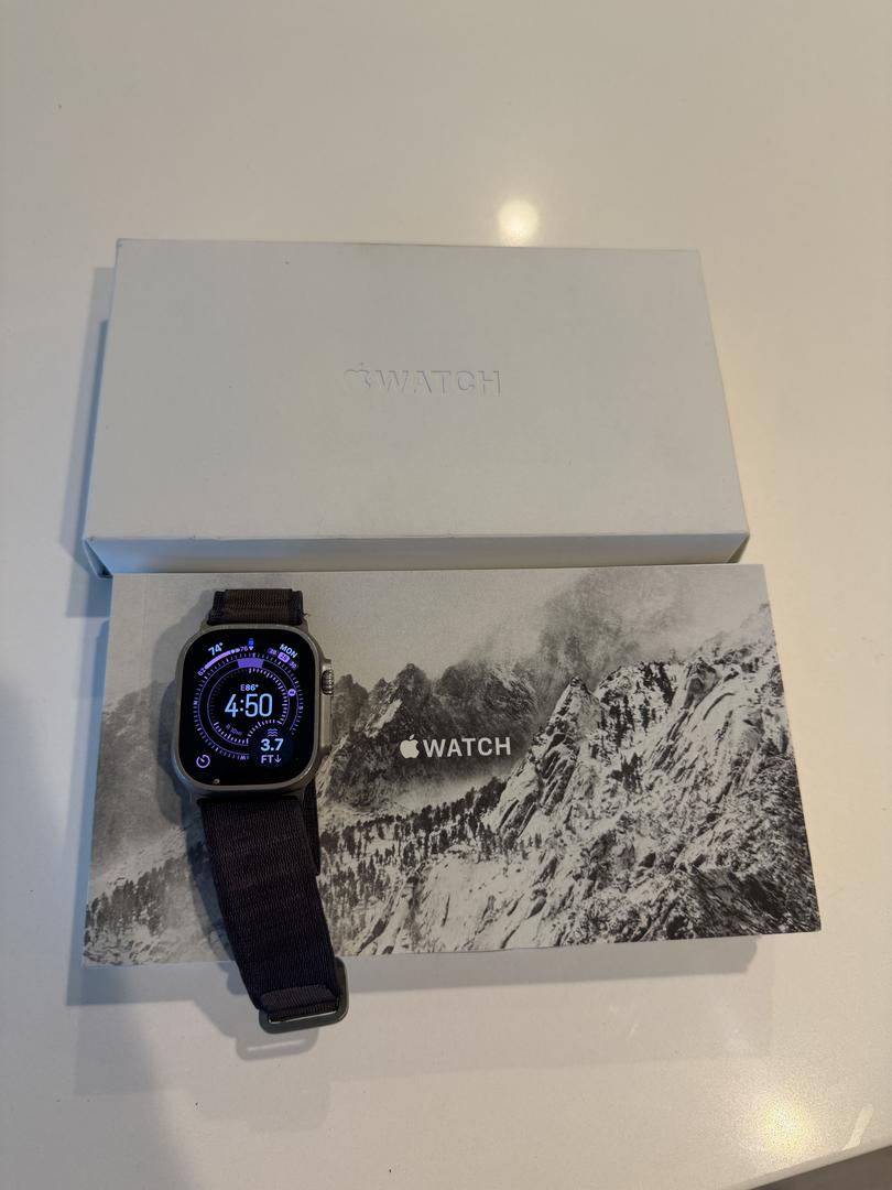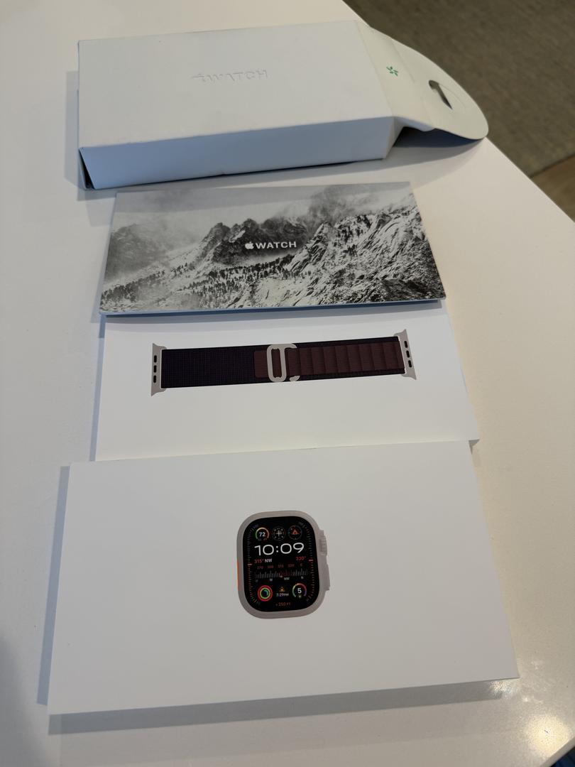 This listing is for a used Apple Ultra Watch 2 with the original box and papers. It also comes with the charger which isn't in the photos