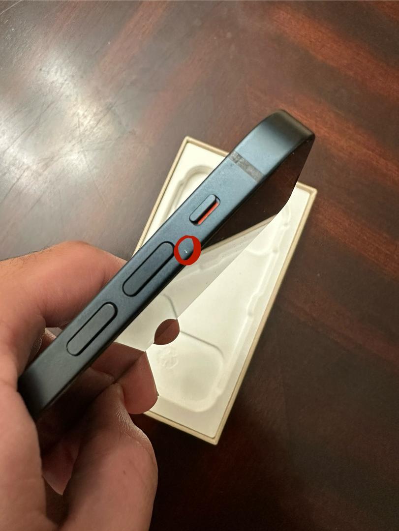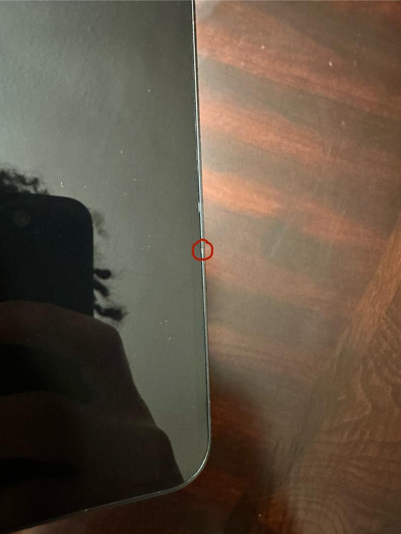 Two minor imperfections one is near the volume button and the other is on the side of the frame where it meets the screen. Shown in pictures.