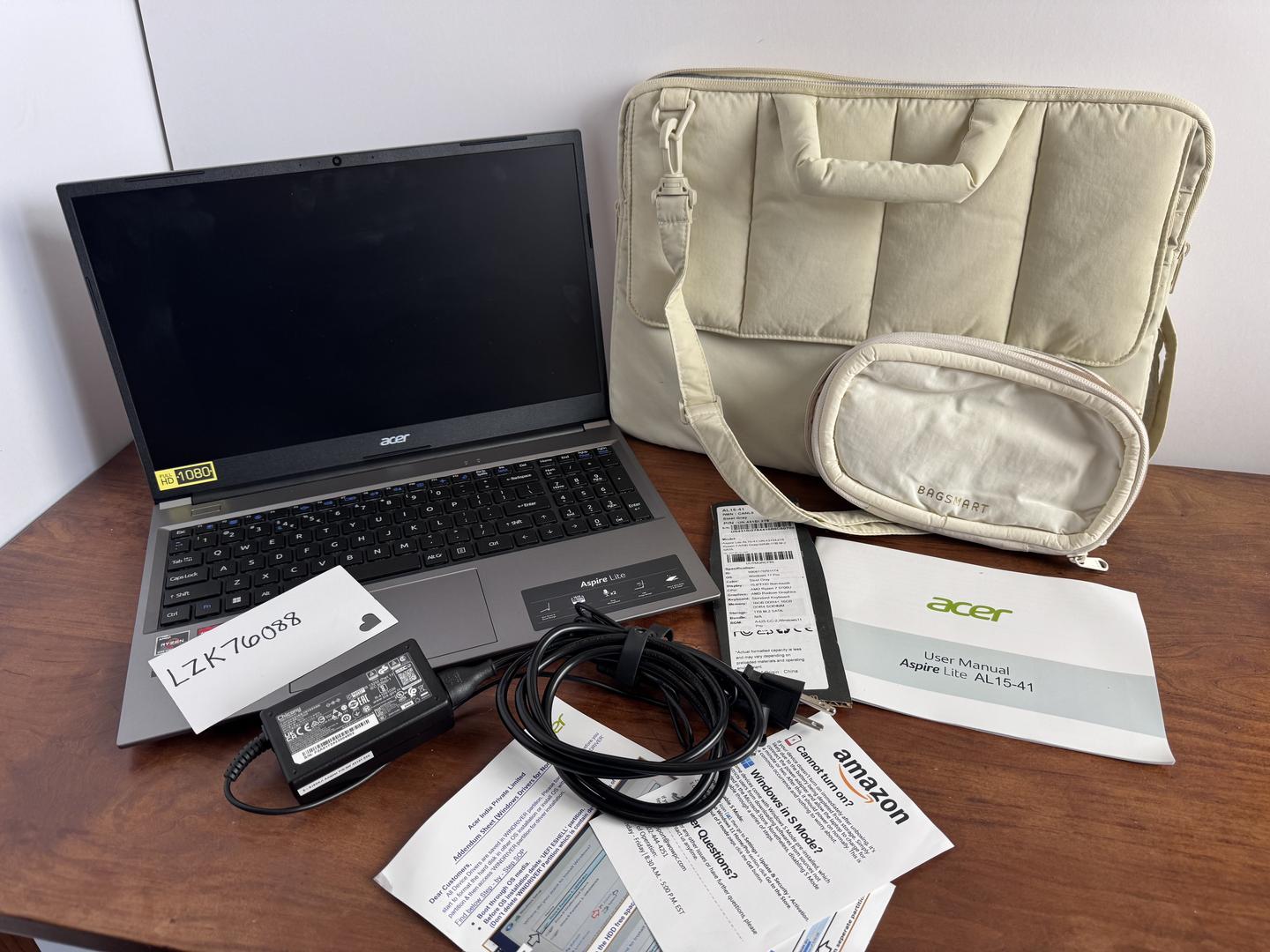 Acer Aspire 3 Ryzen 7 5700U, 32GB RAM, 1TB SSD, 15.6” FHD, Windows 11. Purchased new June 2025, only used for initial setup, fully factory reset and mint condition. Includes original charger, warranty paperwork/barcode, plus BAGSMART padded 15-16” laptop case and cord organizer, both like new. No cosmetic or hardware issues, no box. Ideal for work, school, or casual gaming. Fast Wi-Fi 6, Ethernet, USB, HDMI, Radeon Graphics. Ships promptly from Santa Maria, CA. Non-smoker, pet-free home. Ask for more photos or details.
