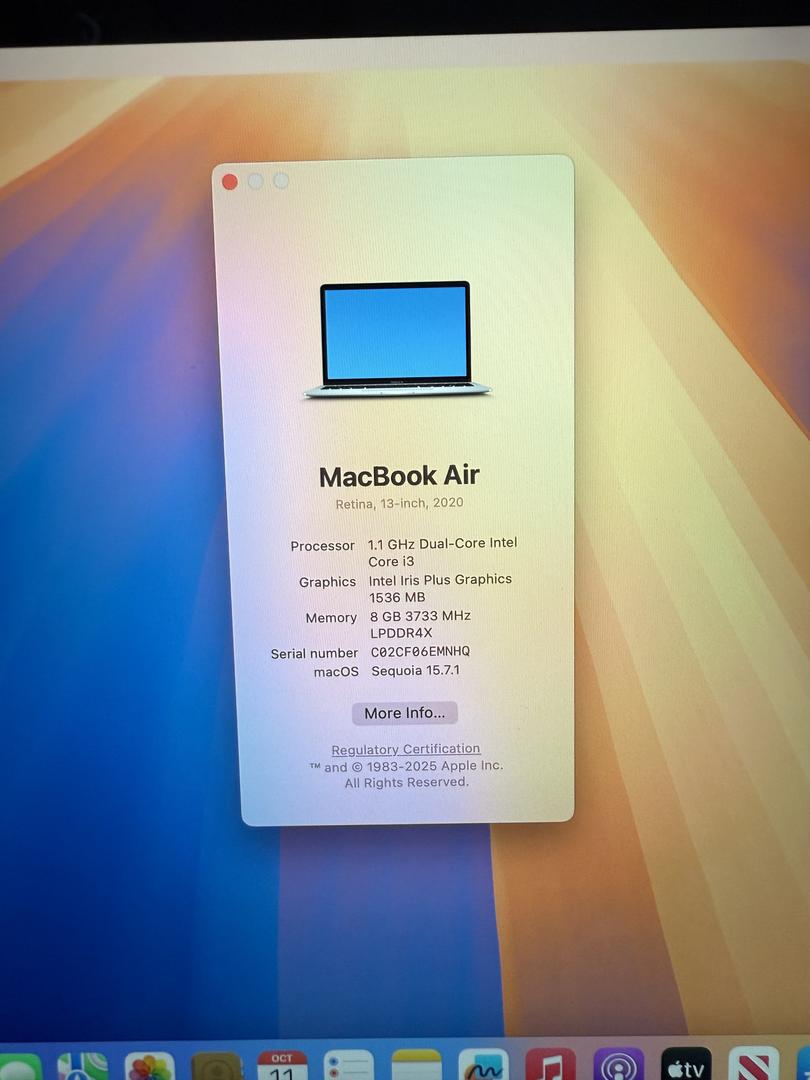MacBook Air 13 2020/8GB RAM/256GB SSD/Fully Functional/Good Battery