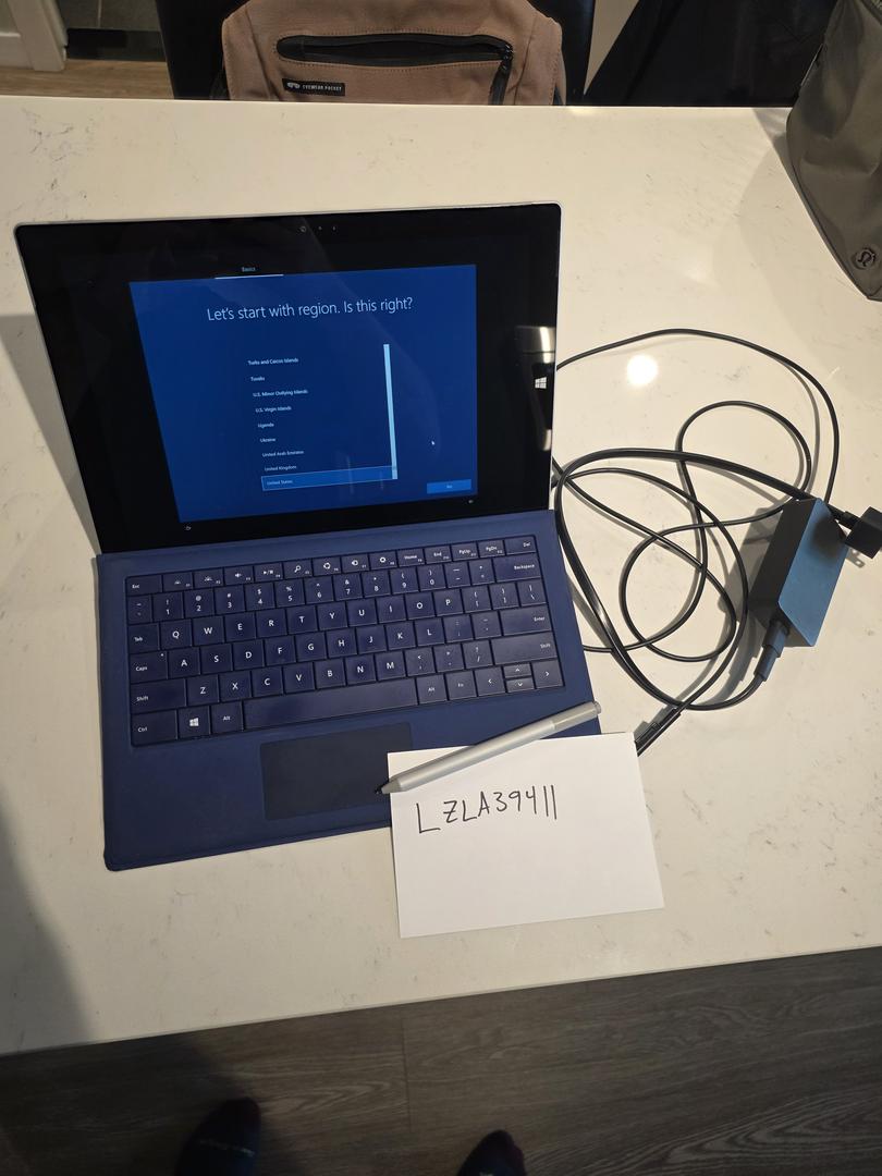 The Surface Pro 3 includes a blue type cover (US layout), the original charging cord, and a surface pen.