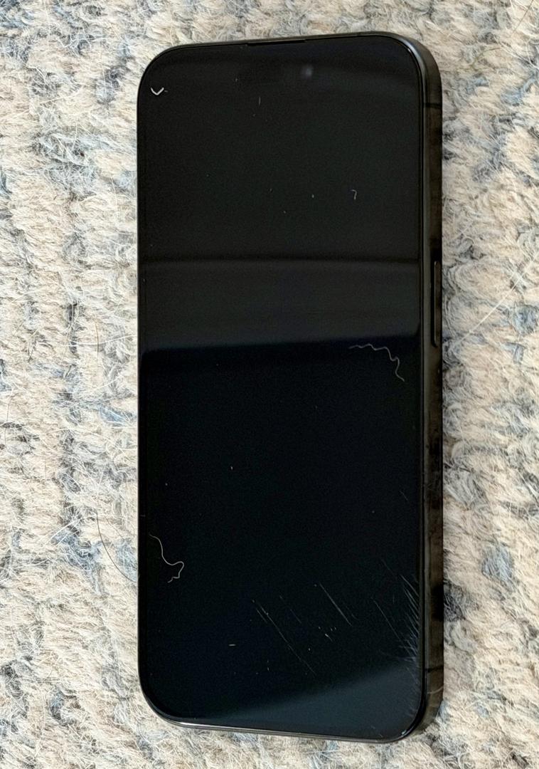 Comes with a new glass screen protector. This iPhone 15pro is in complete working order with no dents or chips, and 87% (normal) battery capacity. It shows some wear with scratches on the lower right of the screen.