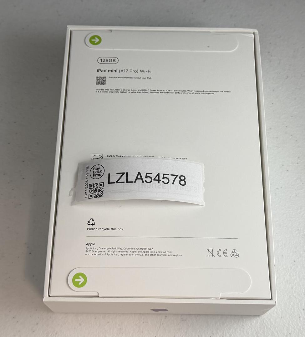 For sale is a brand new Apple iPad mini 7th Generation A17 Pro 128GB Wi-Fi tablet model MXN93LL/A.