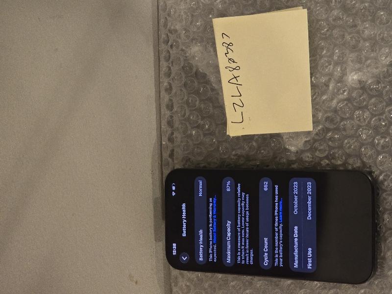 iPhone 15 Pro 128 GB Black in Good Condition. Small scratches and scuffs on screen and back. Sides mint. Damage is pictured and purely cosmetic. Battery health is 87%, lock to T-Mobile. IMEI is clean and ready for activation. Kept well in screen protector and case.