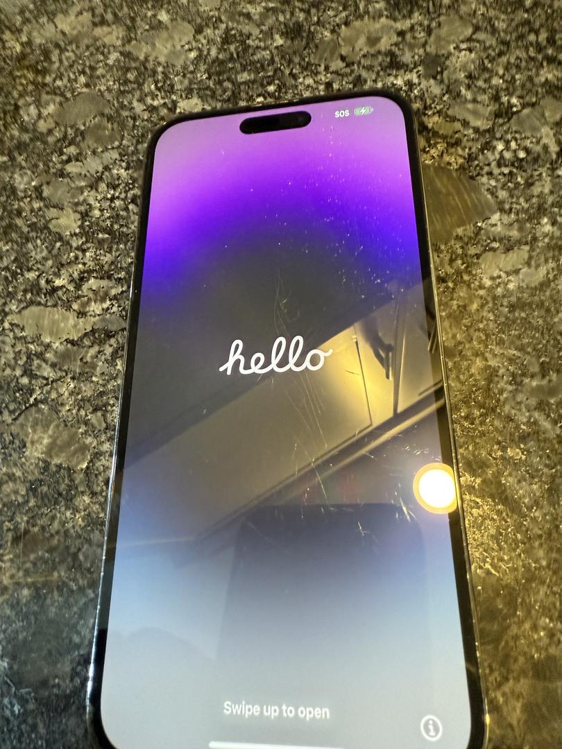 This is a used iPhone 14 Pro Max in purple. There are scratches on the front but I will install a brand new screen protector prior to shipping which makes them barely to not visible.