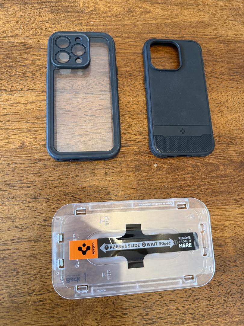 I will also include the following pictured items: Spigen MagSafe case, unused Spigen GLAStR screen protector with applicator, SPIDERCASE waterproof full-coverage case.