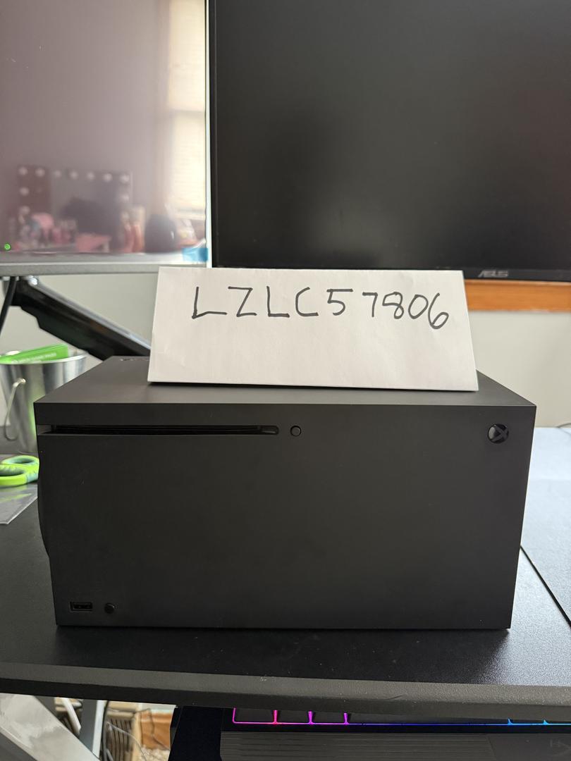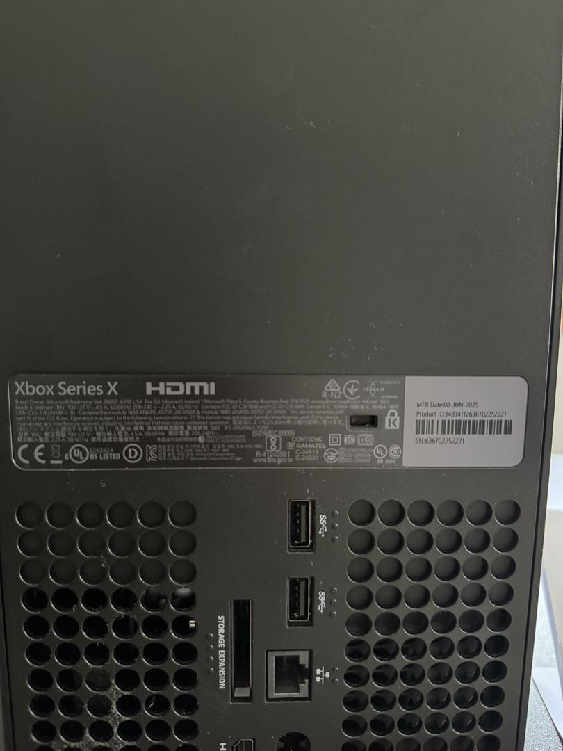 Xbox Series X is in good condition. It shows minor signs of use such as light fingerprints and a small scratch. Fully functional and well maintained.