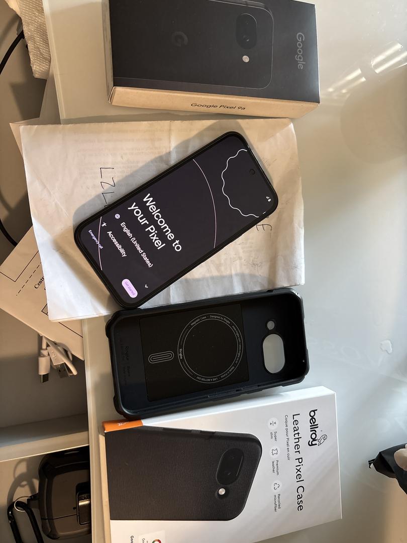 hardly used. Factory reset ready for new owner. With original box, additional screen and camera protectors, and two cases. One is the google direct bellroy leather case and one is a ringke MagSafe black sand feel case. Phone has had screen and camera protectors since day one of use. Not a scratch on it.