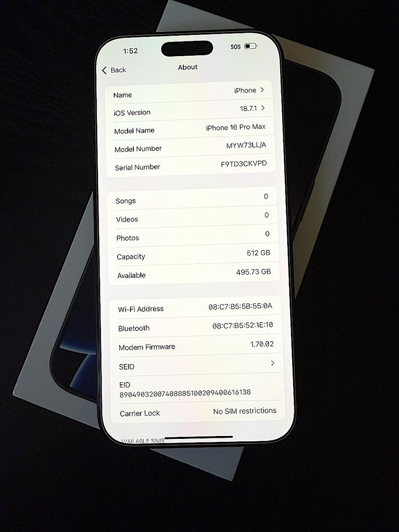 Apple iPhone 16 Pro Max -512GB - Black Titanium (Unlocked).