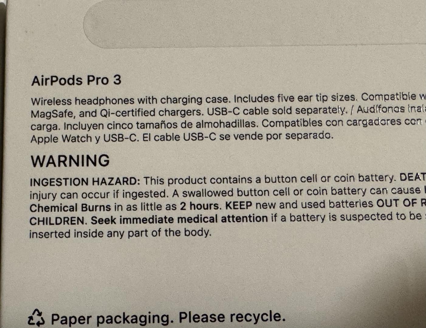 Apple AirPods Pro 3. Opened and tested a few times. Comes with original box and ear tips. Eligible for AppleCare Plus. Proof of purchase (receipt available). Protective case included.