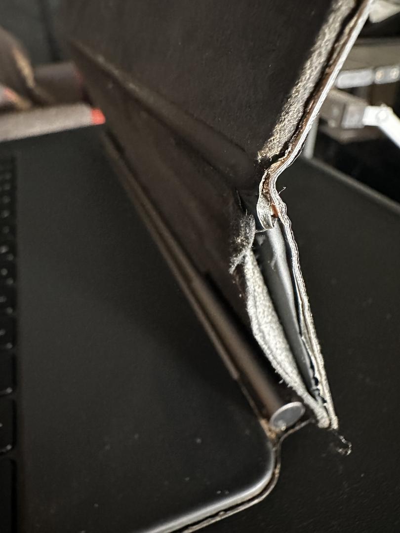 None on iPad itself. Included Magic Keyboard has frayed spots on edges (see images).
