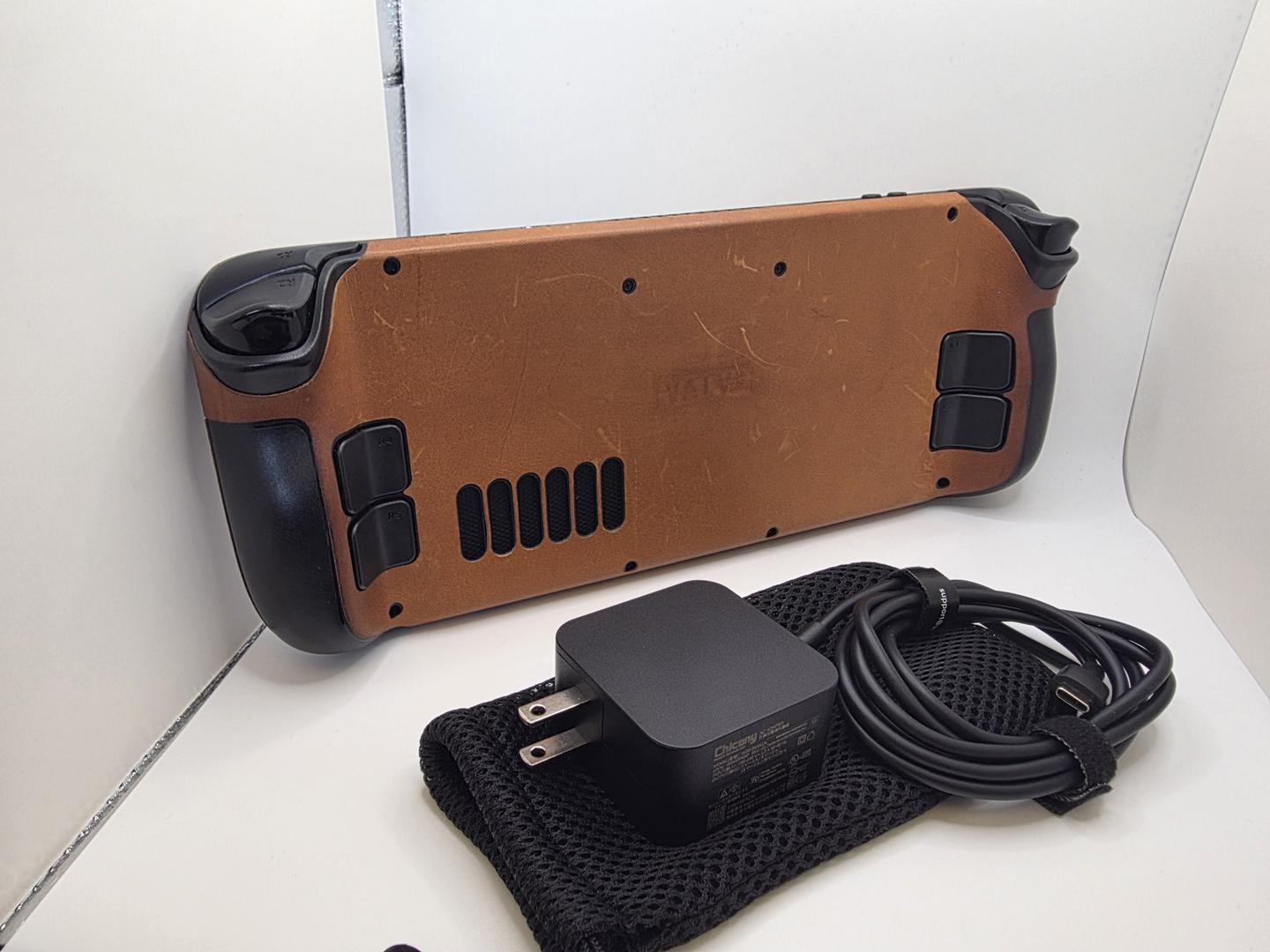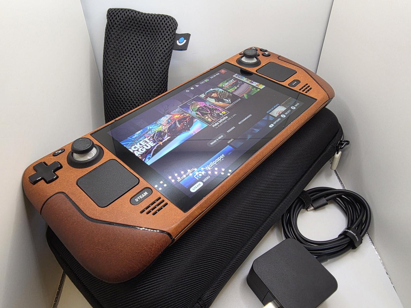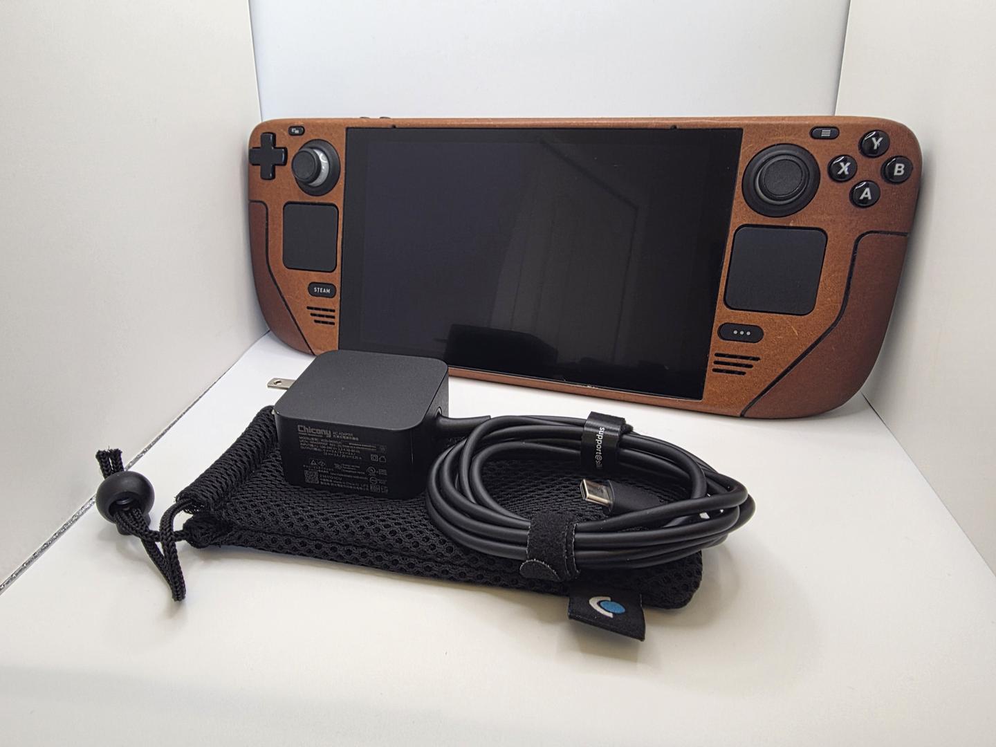 512 Steamdeck with OEM case, Charger, Anit-Glare includes dBrand Leather Skin & 256GB SD card