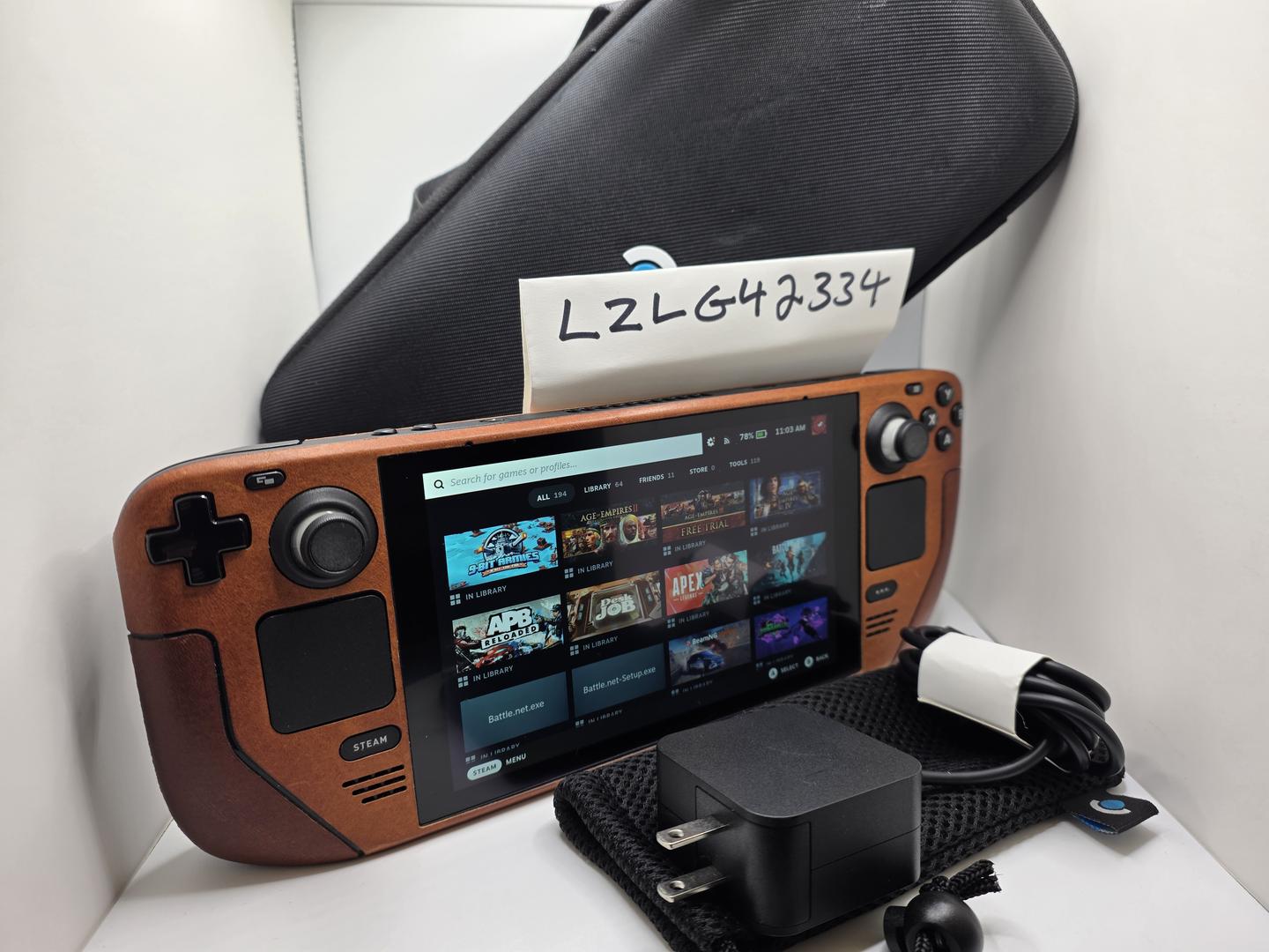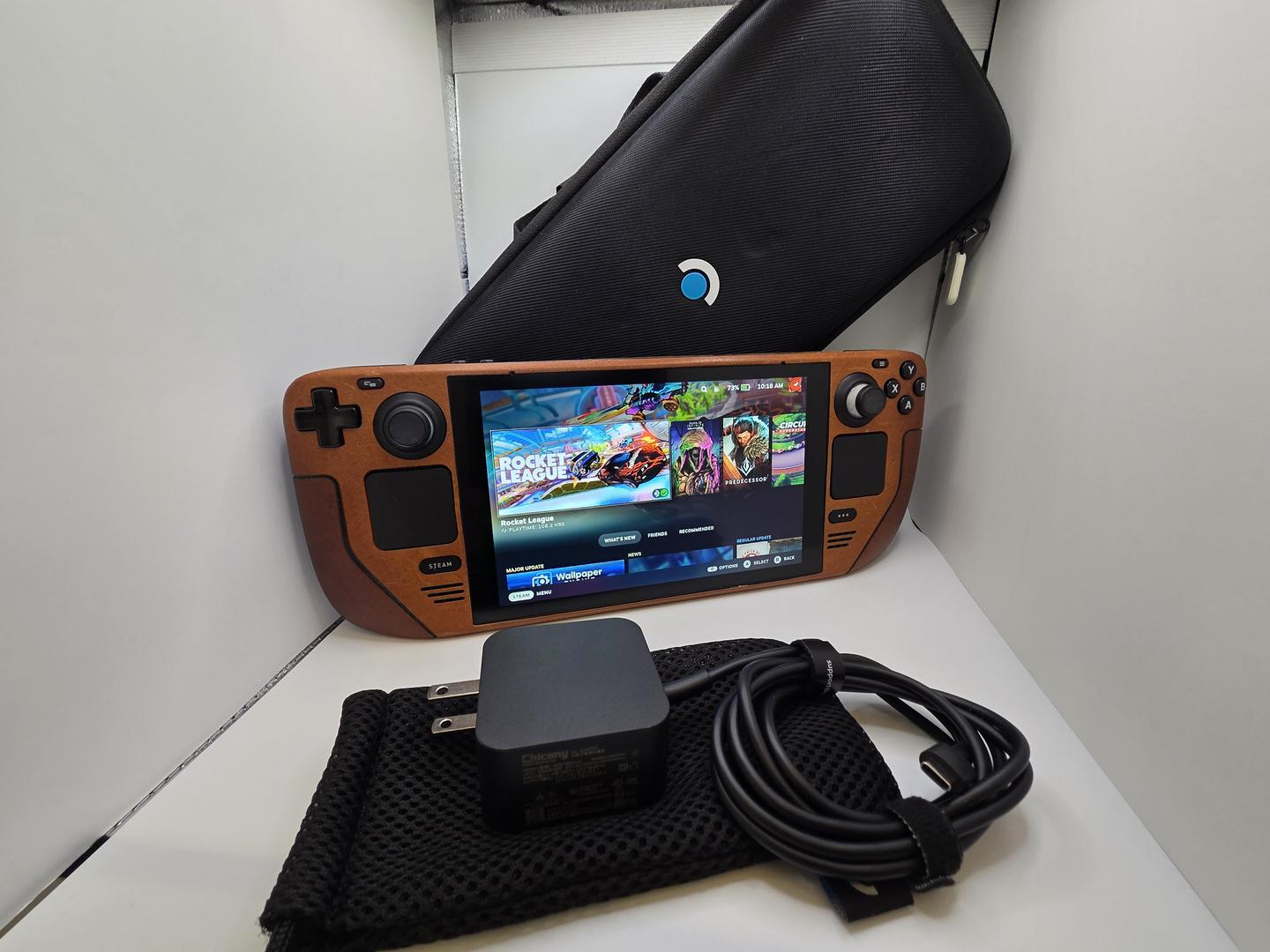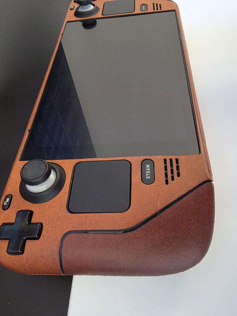 512 Steamdeck with OEM case, Charger, Anit-Glare includes dBrand Leather Skin & 256GB SD card