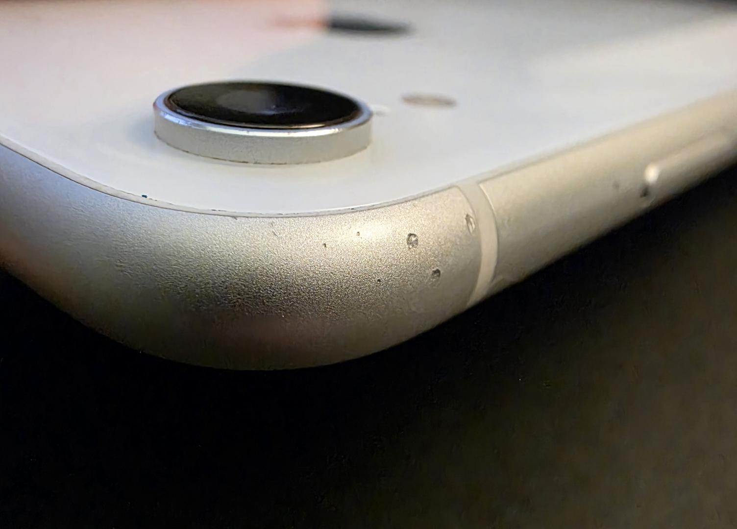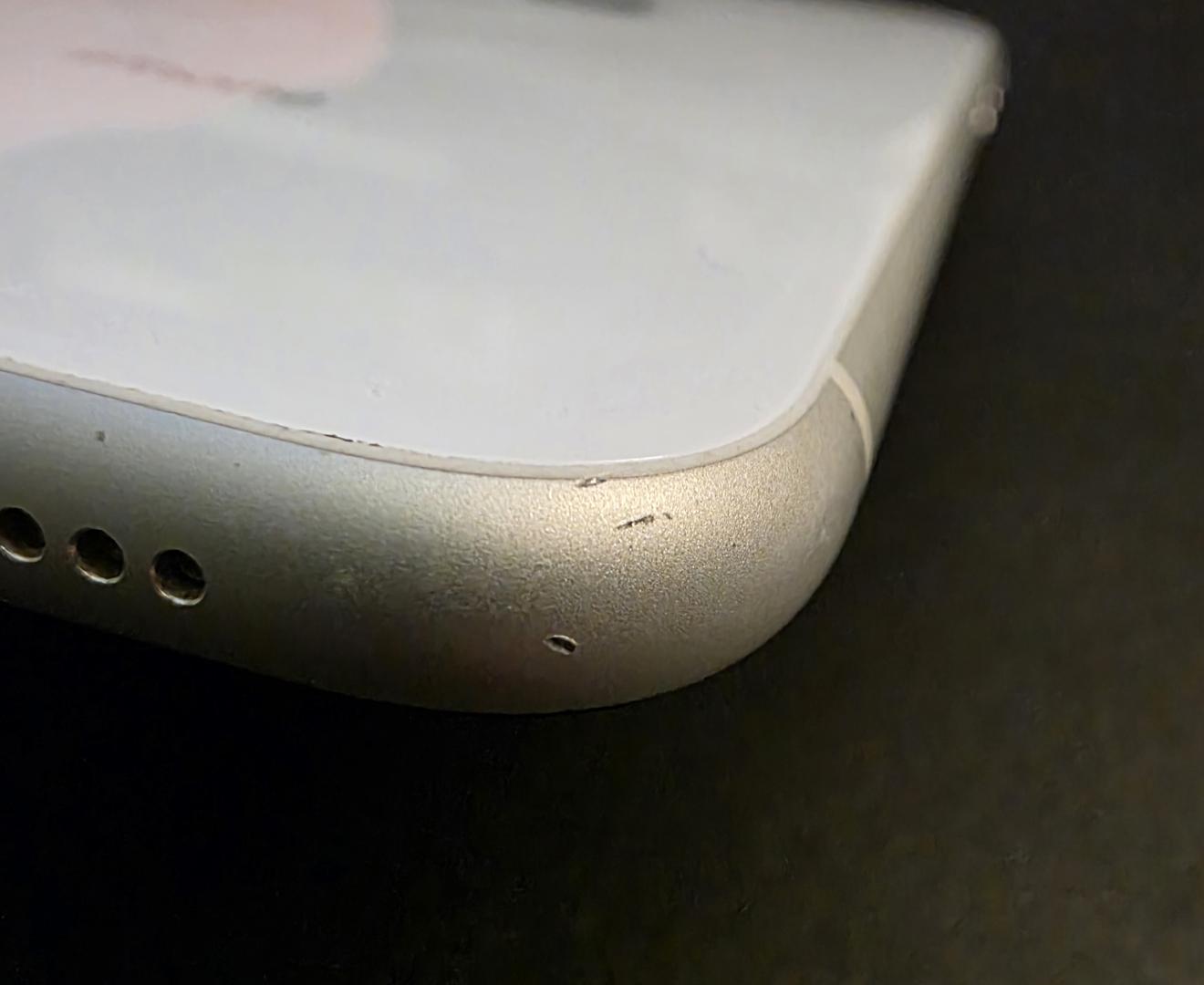 Screen and back are in really great condition, but there are scuffs and chips on the frame from normal use. I don't know the history of this phone, because I purchased it refurbished from Amazon in March 2025. I hardly used it while I owned it.