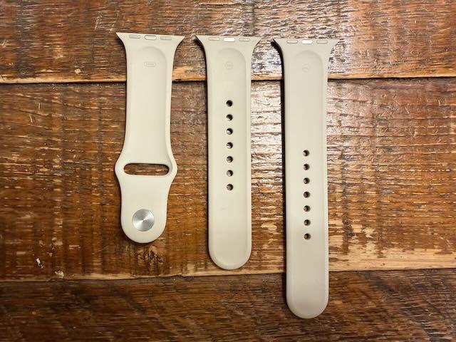 Includes USB-A charging cable and two watch bands.
