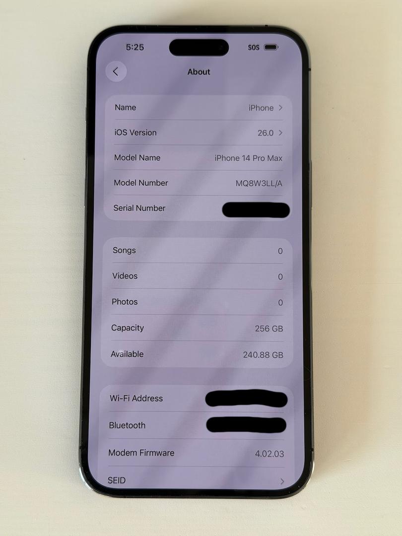 iPhone 14 Pro Max 256GB Deep Purple + Case – Unlocked, iOS 26, Mint Condition, 81% Battery Health