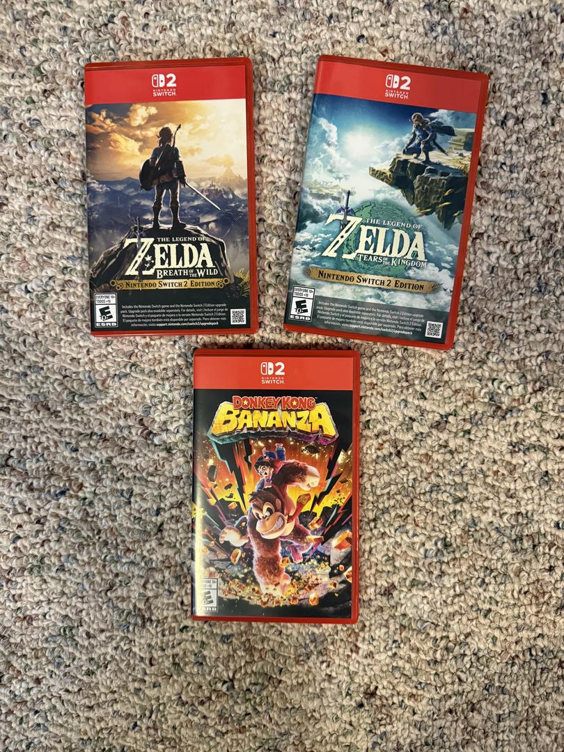 3 games-Zelda BOTW, Zelda TOTK, Donkey Kong Bananza