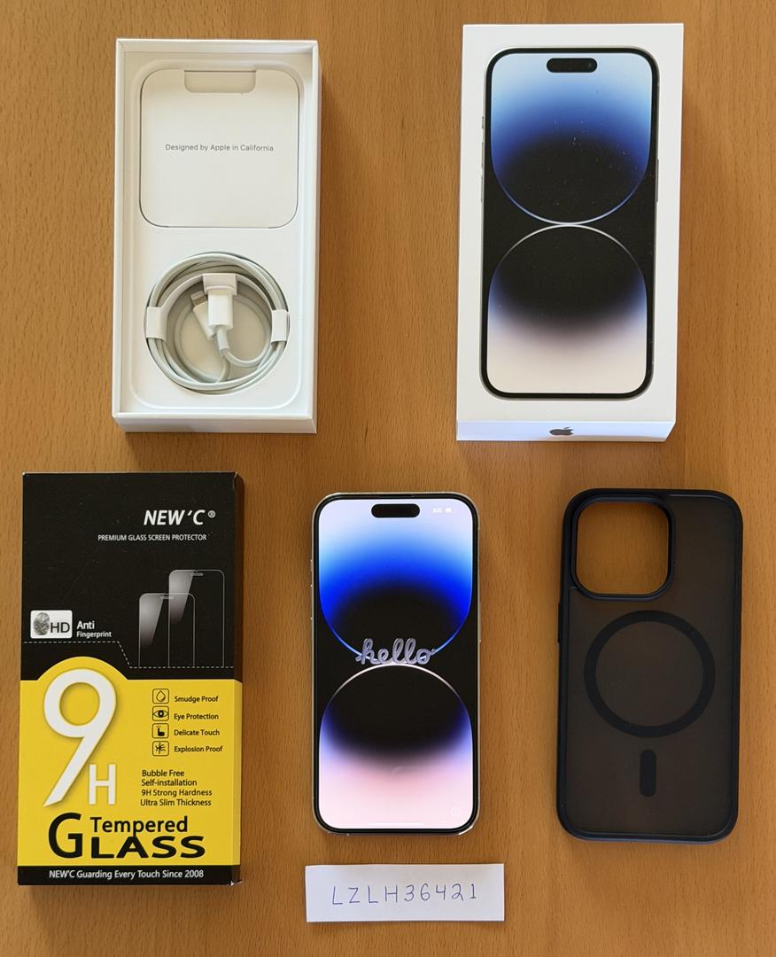 Selling my iPhone 14 Pro, pampered since Day 0 with a case and screen protector applied before first use—no scratches or blemishes, looks like new.
