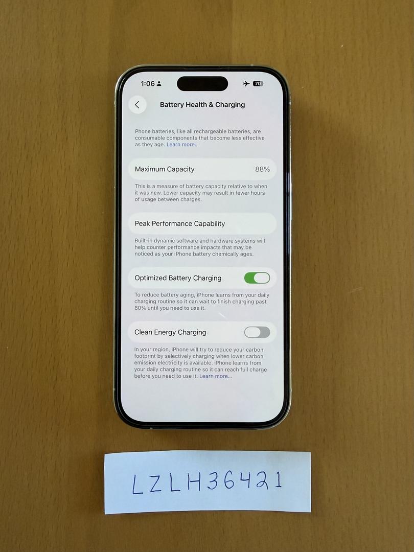 Battery health is 88%. I’ve seen no drop in real-world battery life thanks to careful charging habits (smart outlet + Shortcuts to not exceed 80% charge, rarely let discharge beyond 20%, mostly slow-charged with 5W charger+cable).