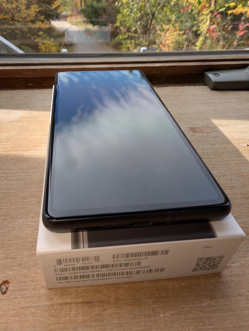 Pixel 7a, box opened, phone used for less than a week. Essentially brand new. Comes in original box with all cables and adapters provided by Google. Phone has been in the original box in my desk drawer. No scratches, no dings. Happy to provide additional photos upon request.