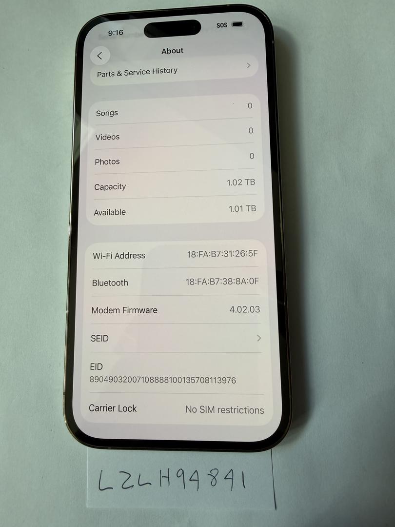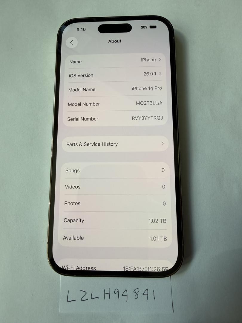 Unlocked iPhone 14 Pro 1 TB Gold (BH 88%)