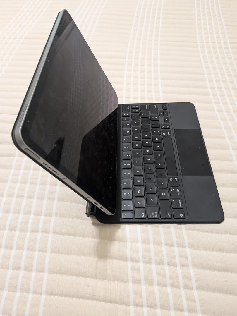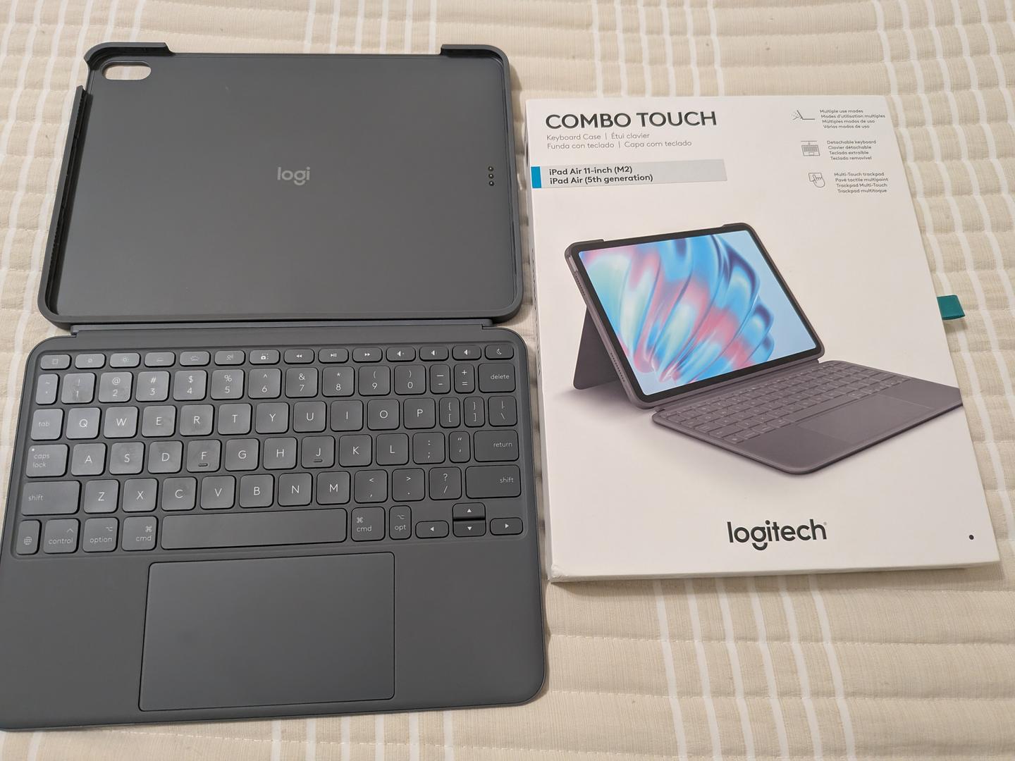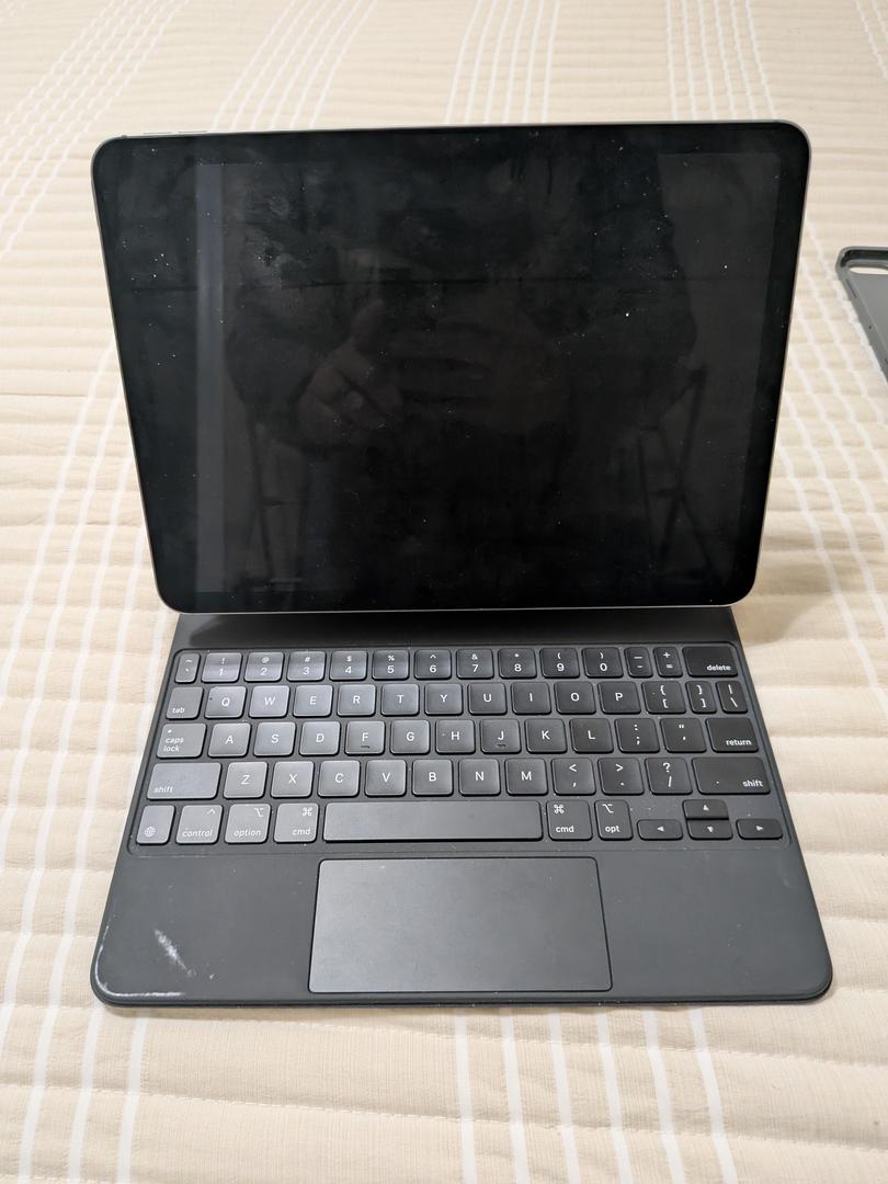 Listing for mint condition iPad Air 11" M2, Gray, 128Gb. Retail box, charger and cable included. Also throwing in Apple Magic Keyboard (good condition), Logitech Combo Case (mint condition), Apple Pencil Pro (mint), and a 4-pack of Apple Airtags.