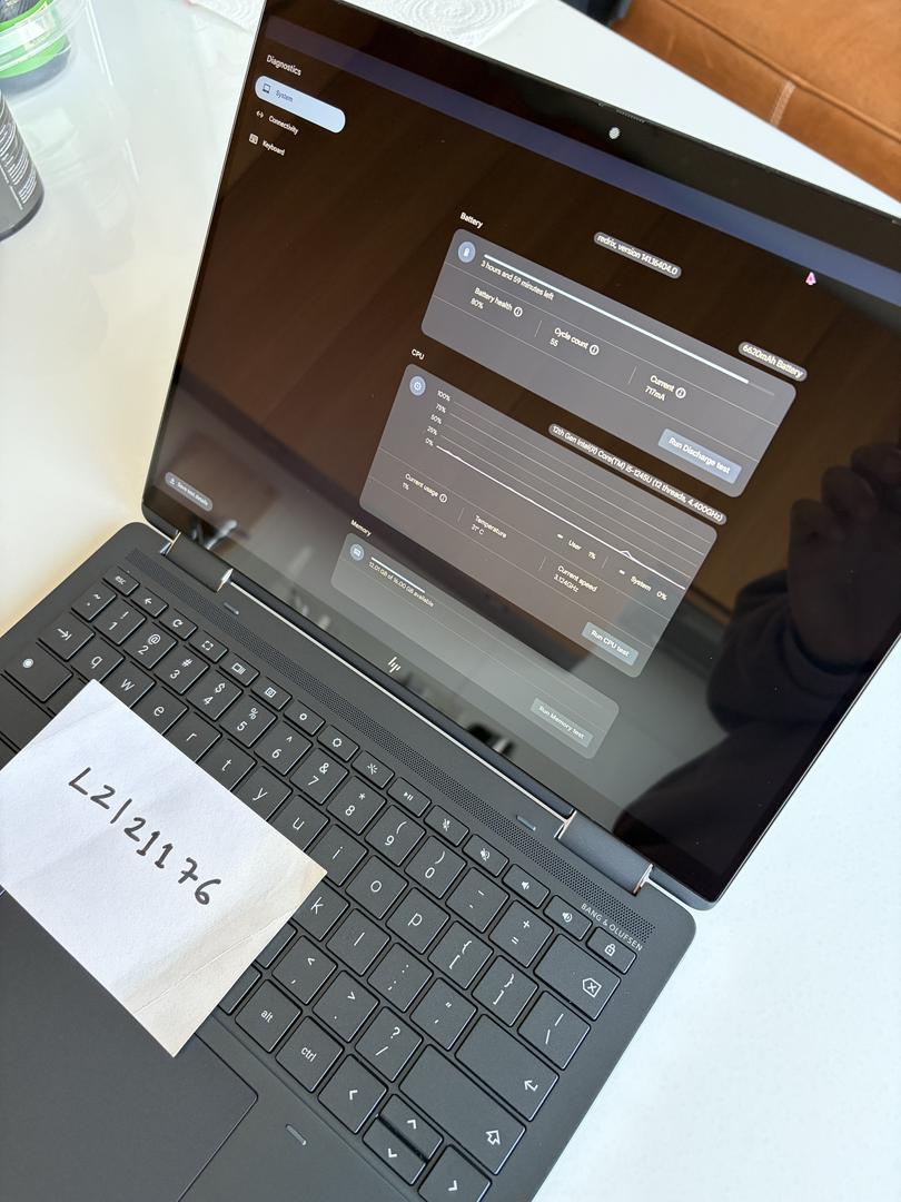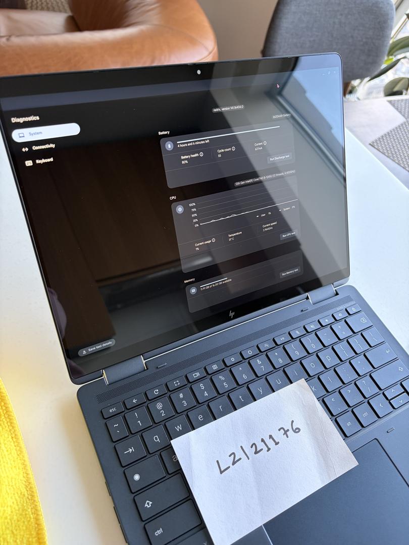This has a uniqe 3:2 aspect ratio. Super fast, fingerprint reader. Chromebook Plus. Only 55 Cycles.