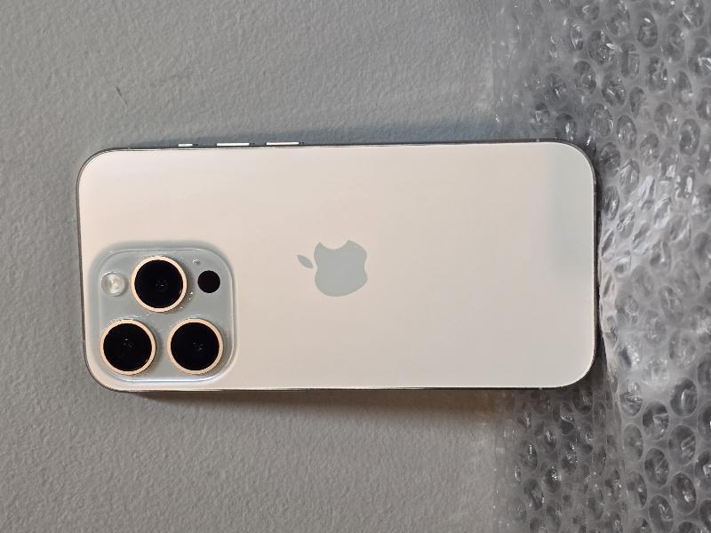 iPhone 15 Pro 128 GB White in Near Mint Condition. Tiny scratches on screen, sides, and back. Damage is pictured and purely cosmetic. Damage is pictured and purely cosmetic. Battery health is 89%, T-Mobile Locked. IMEI is clean and ready for activation. Kept well in screen protector and case.