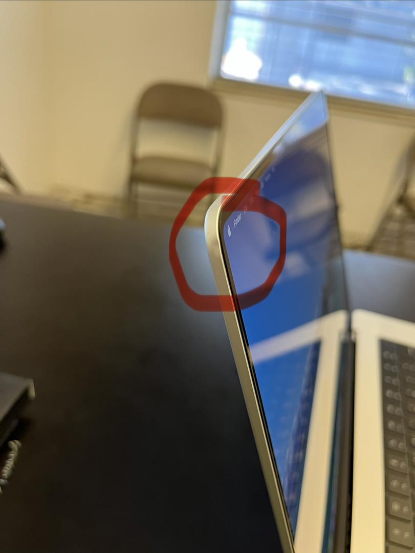one very light dent in upper left corner of the screen frame (pictured)