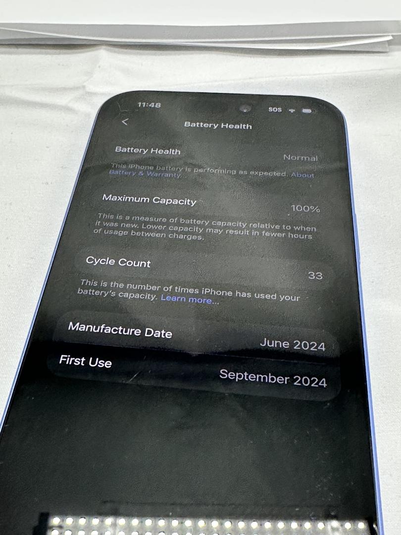 iPhone 16, in great condition with barely any use! Only 33 charge cycles no signs of wear on housing and only small/light scratches on screen.