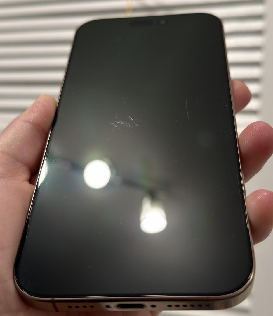 Small (less than dime sized) area of mild scuff on screen, unable to be felt when scrolling or rubbing finger across screen.