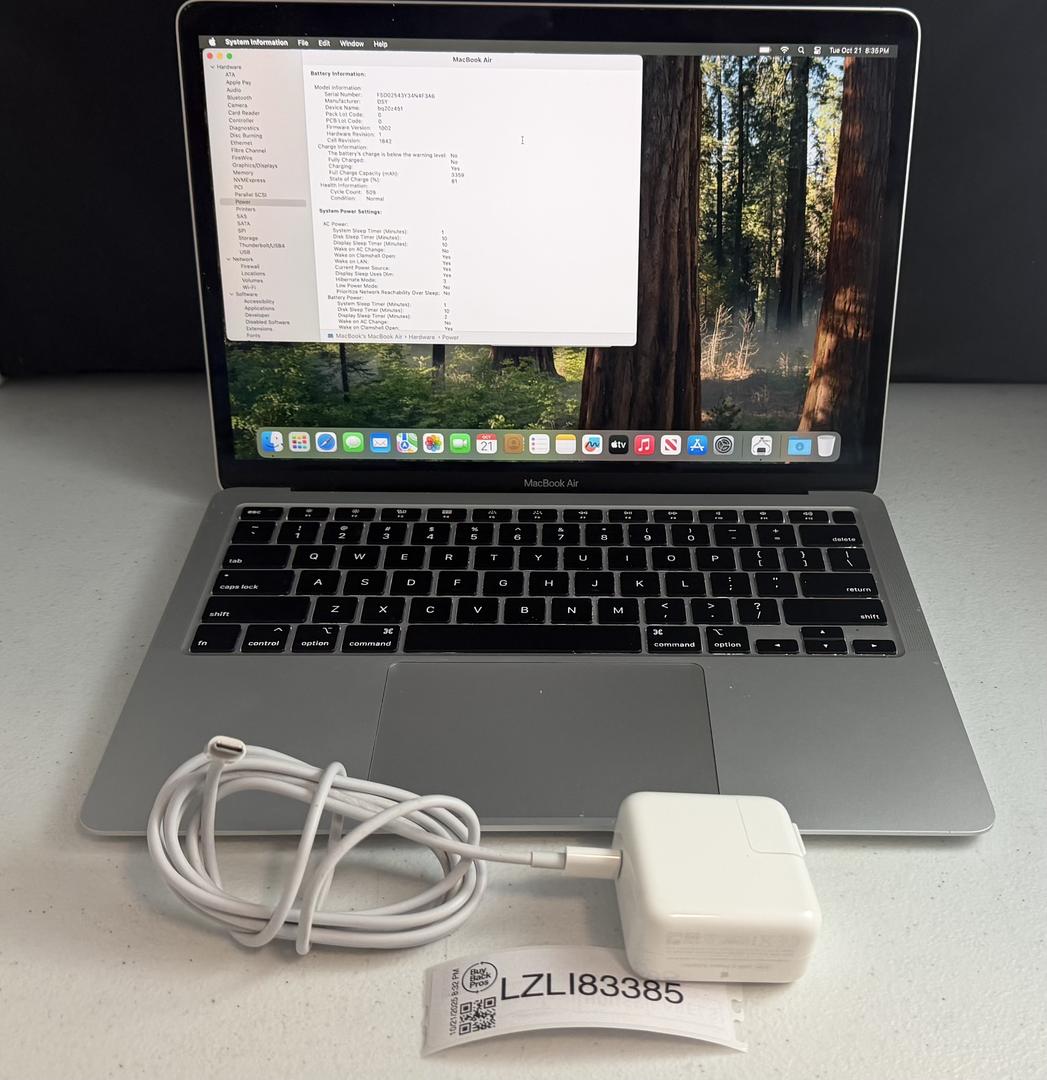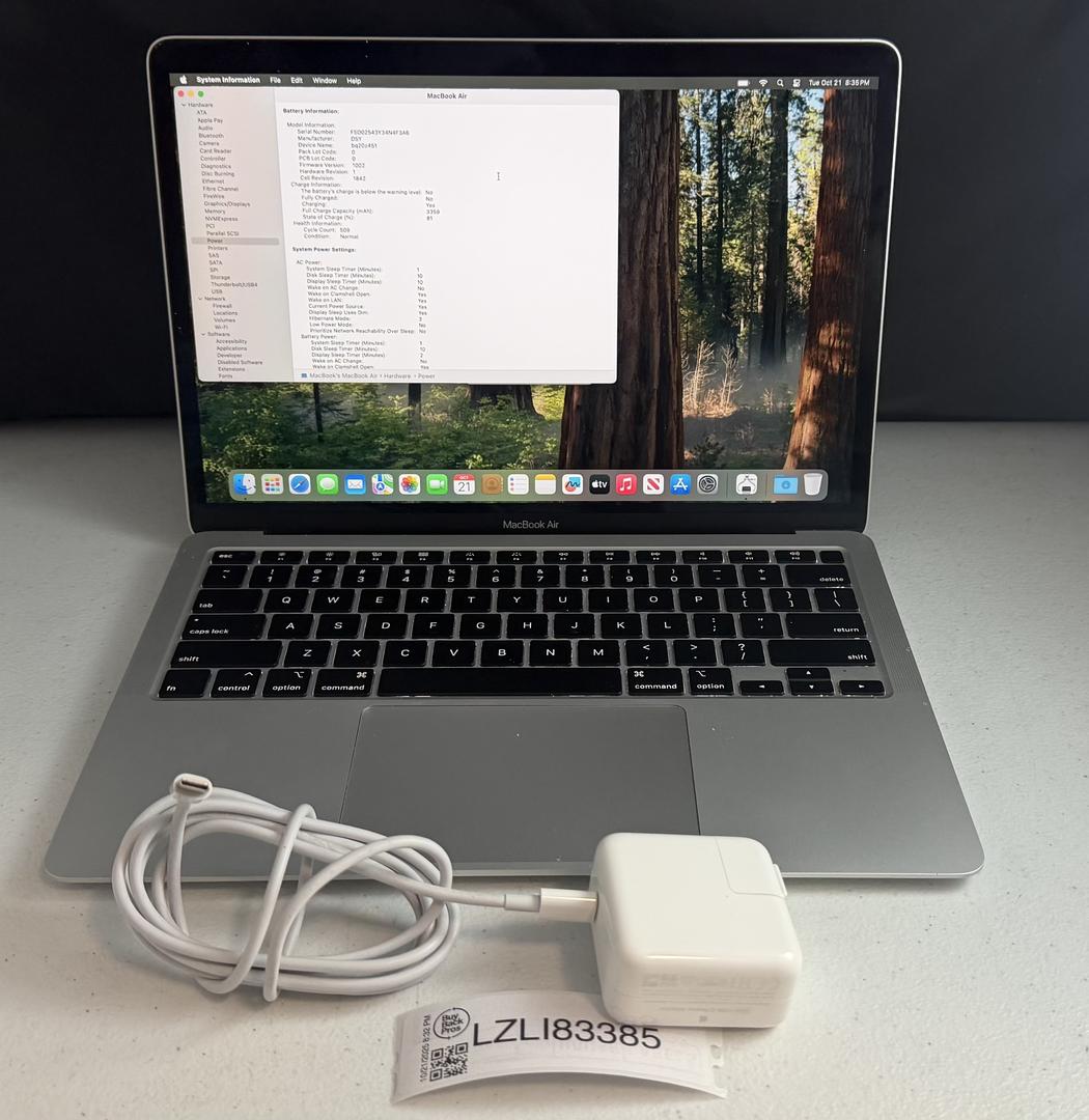The laptop has been labeled in good used condition and works perfectly (see pictures). The laptop casing is in good shape with minor blemishes, wear, & tear (see pictures). The battery has a good healthy charge and only has 509 cycle counts (see pictures). Apple macOS is installed & the system passcode is currently set to 2025.
