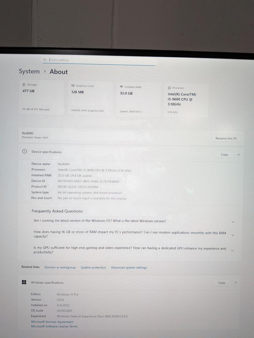 Dell Precision 3431 SFF Intel Core i5-9600 512GB NVMe 32GB RAM Windows 11 Pro