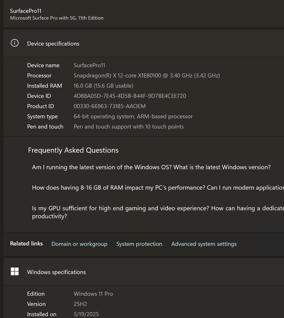 For Sale is my mint-condition Microsoft Surface Pro 11 w/5G. It has a beautiful OLED screen, Snapdragon X Elite processor, 16GB RAM, a Sabrent Rocket 2TB SSD, and Surface Keyboard w/Slim Pen. Comes with transferrable factory warranty until 2/22/2026.