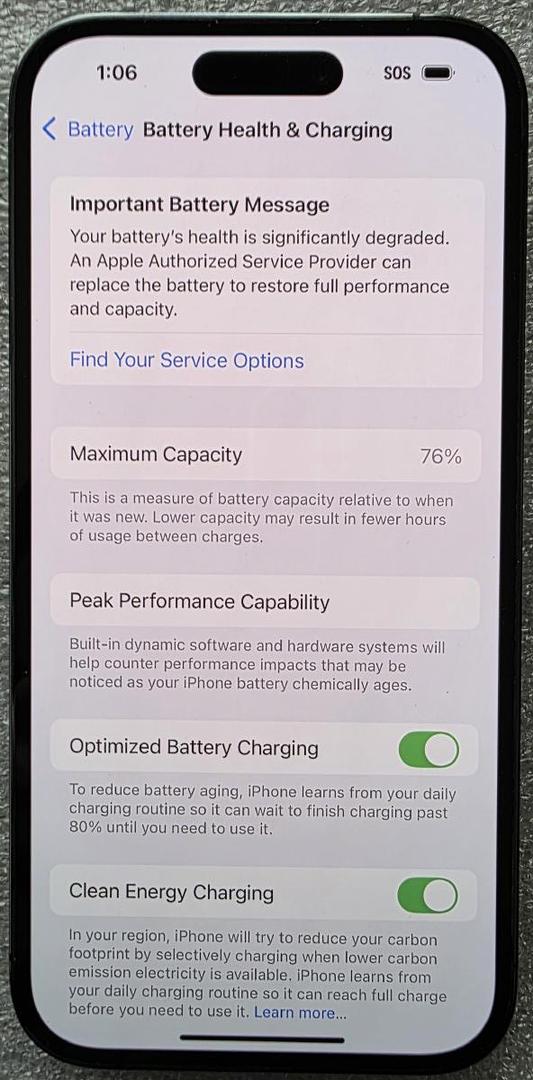 Battery Health 76%