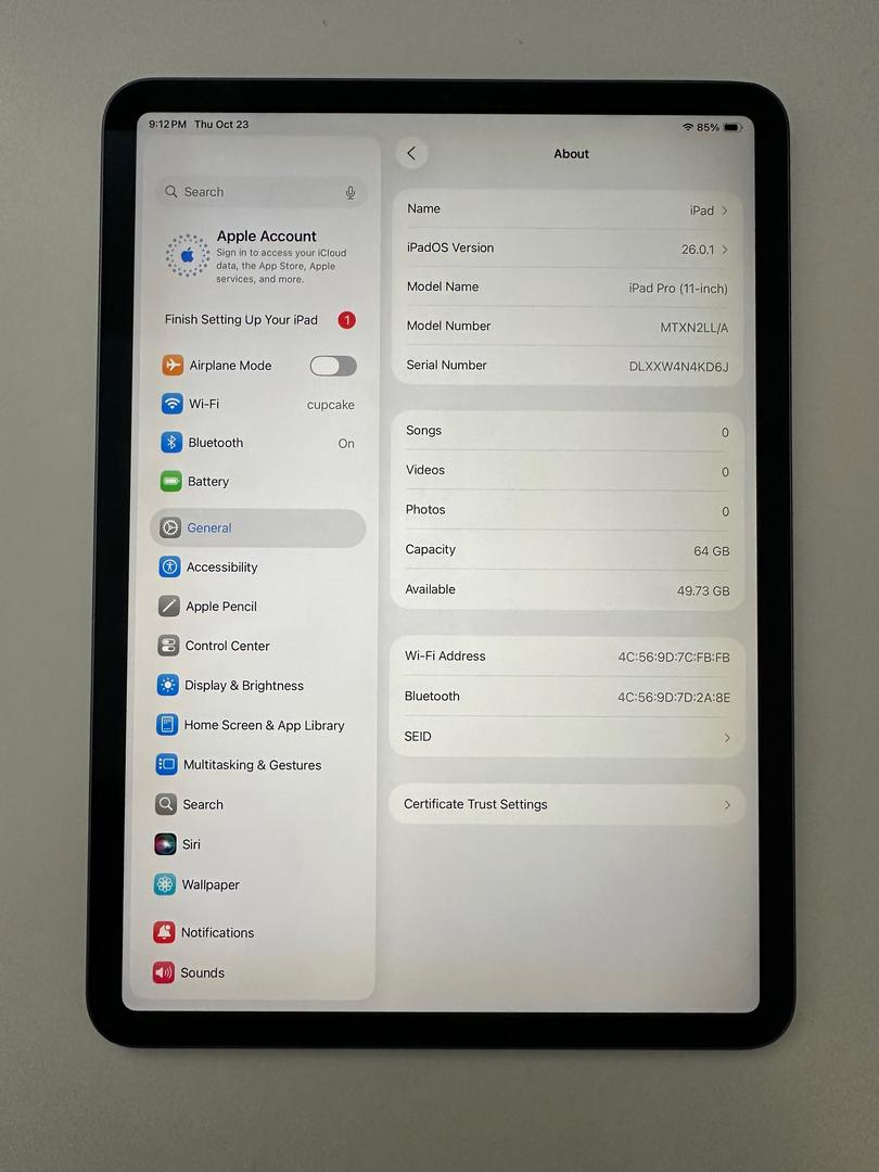 ✅ Certified Apple iPad Pro 11" 2018 64GB Space Gray 🔒Wi-Fi ⭐ Mint Condition