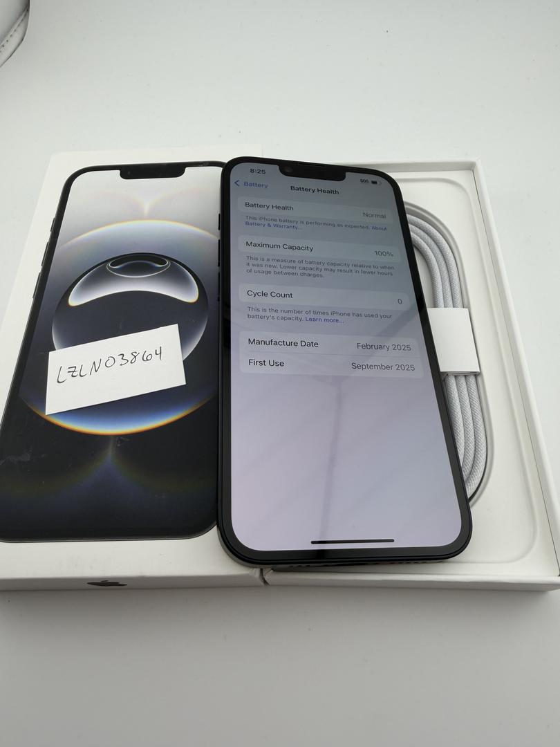 The phone's battery shows a 0 cycle count (basically new)
