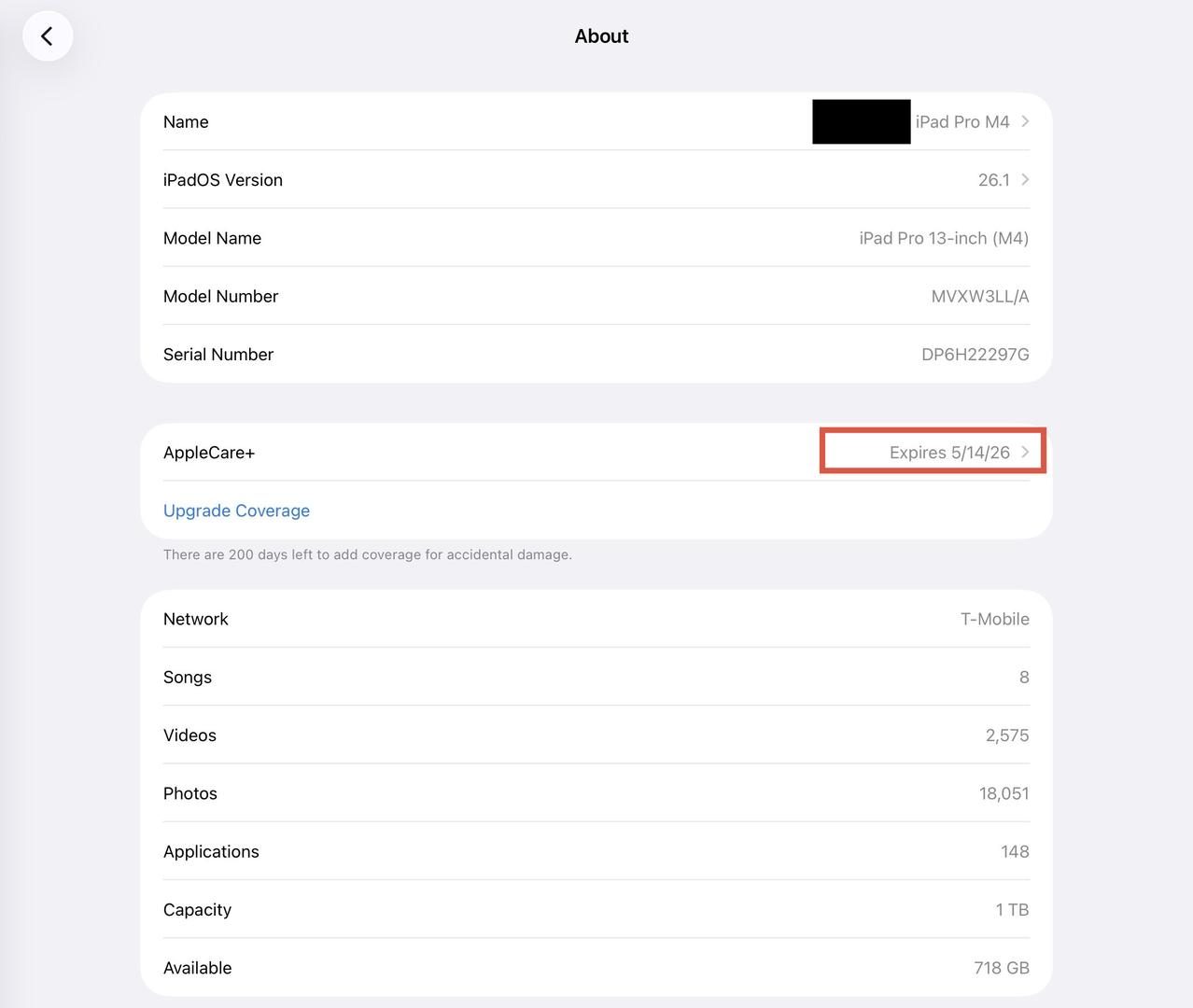 • Coverage: AppleCare+ Theft & Loss remaining (6+ months)