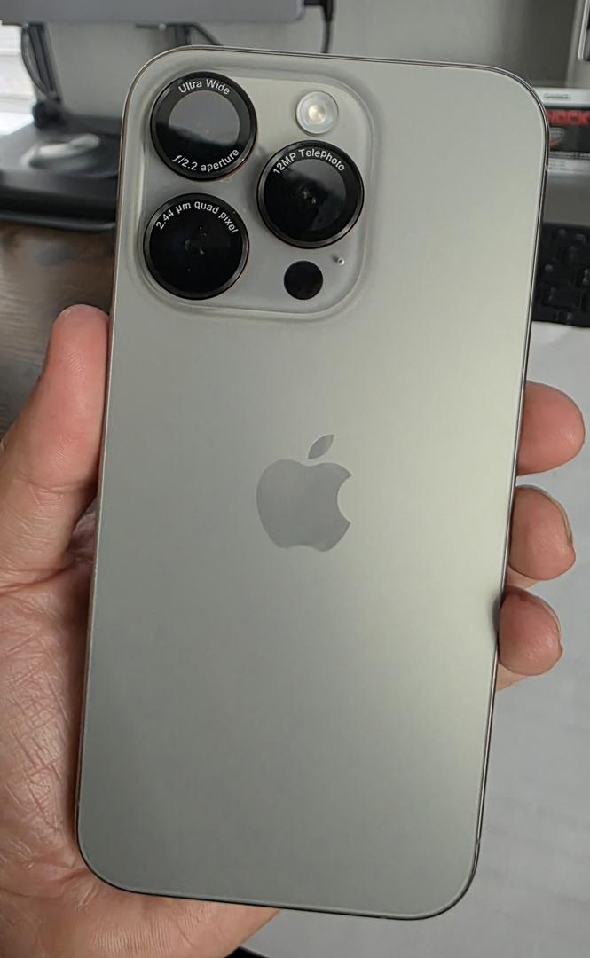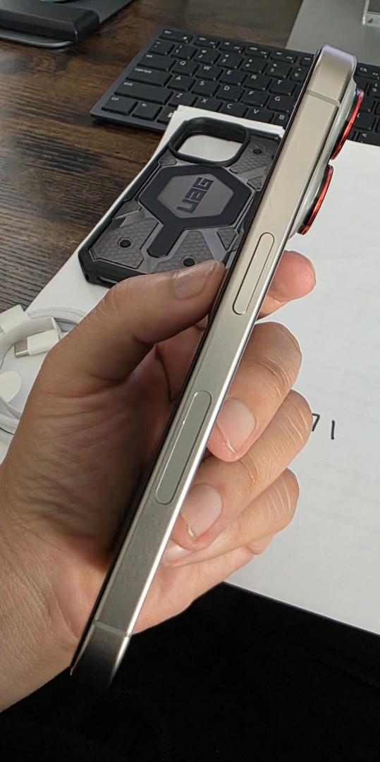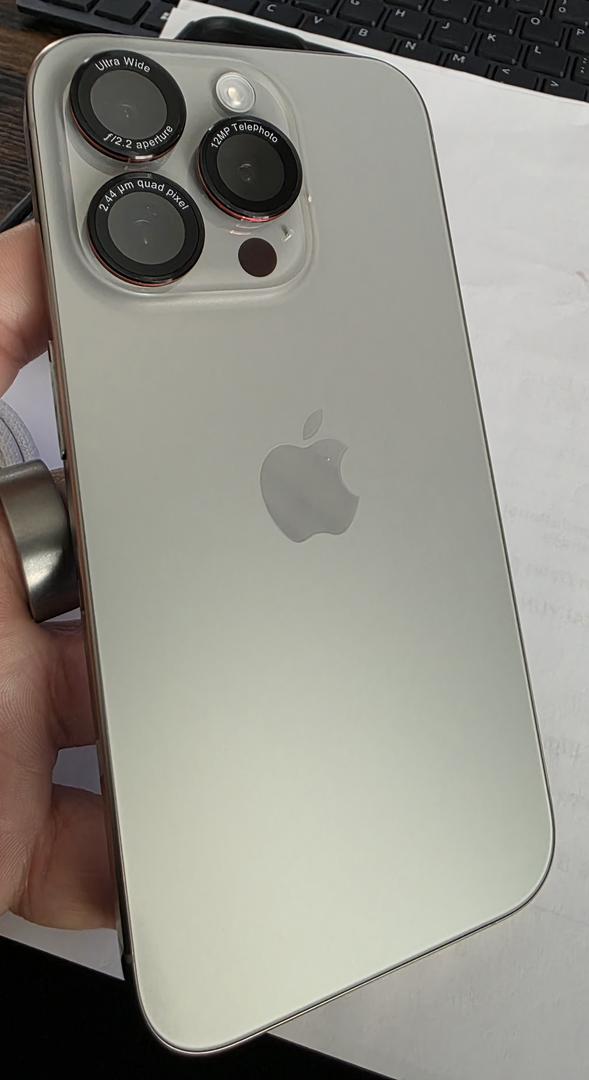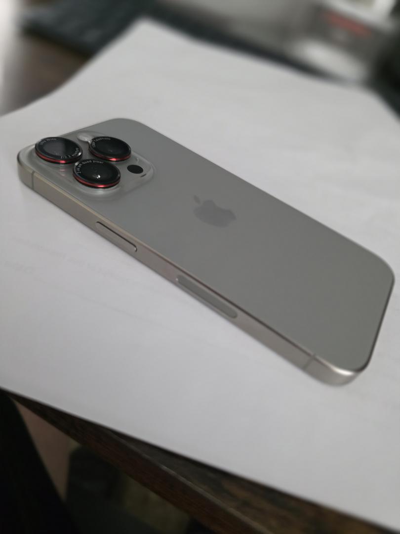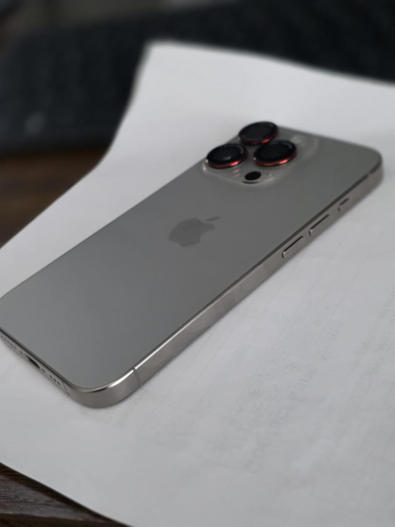 The iPhone 15 Pro is in pristine condition, having been encased since its initial purchase.