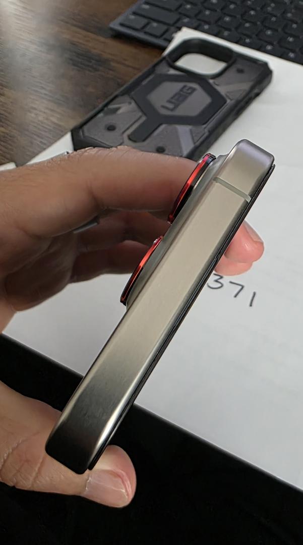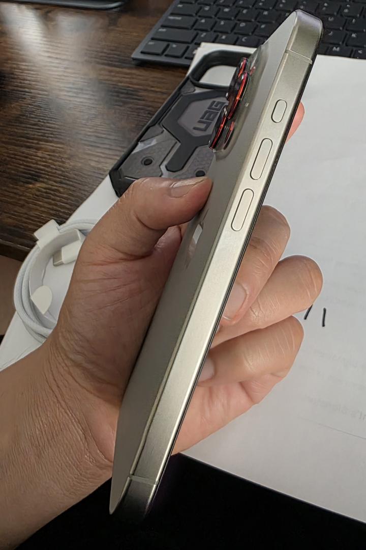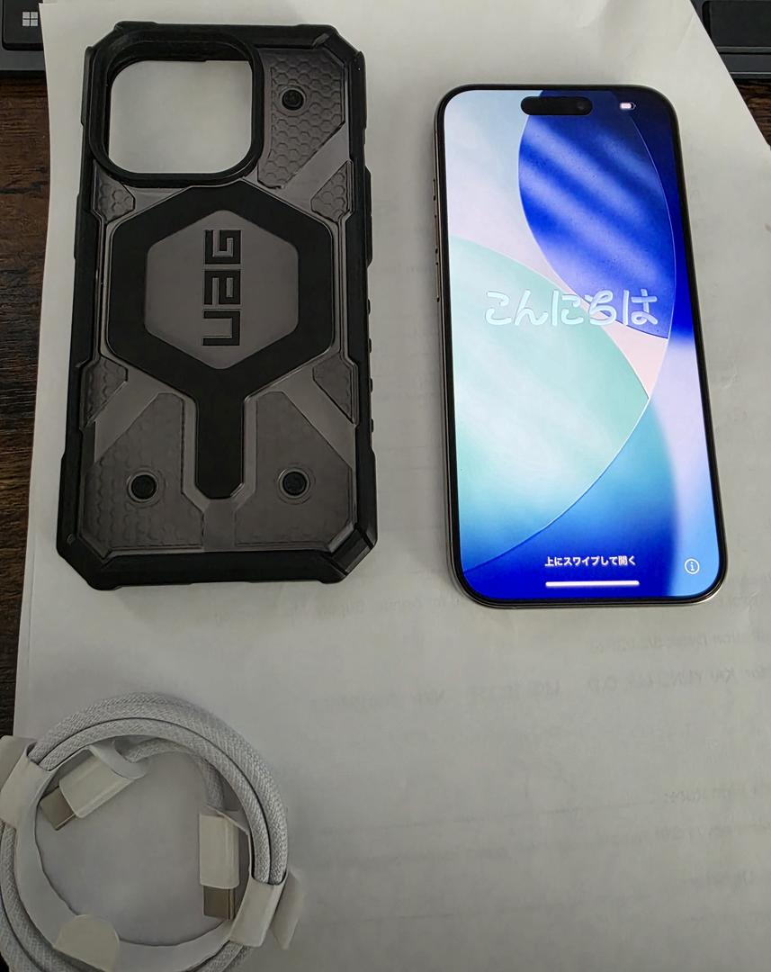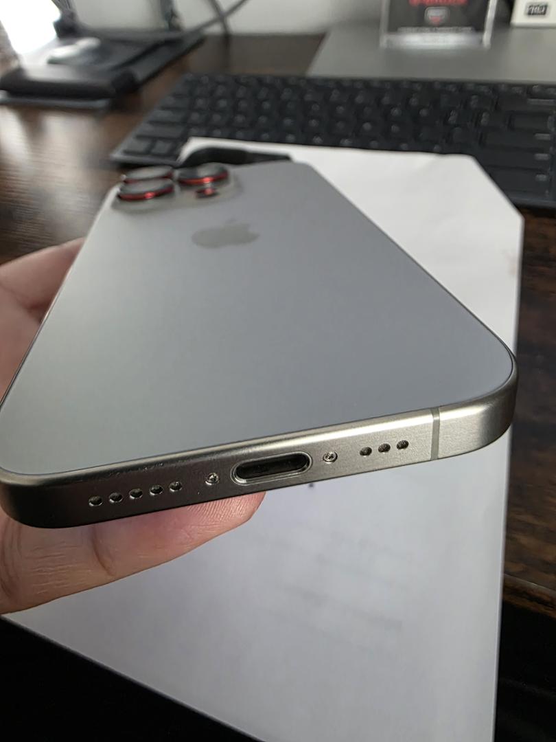 The iPhone 15 Pro is in pristine condition, having been encased since its initial purchase.