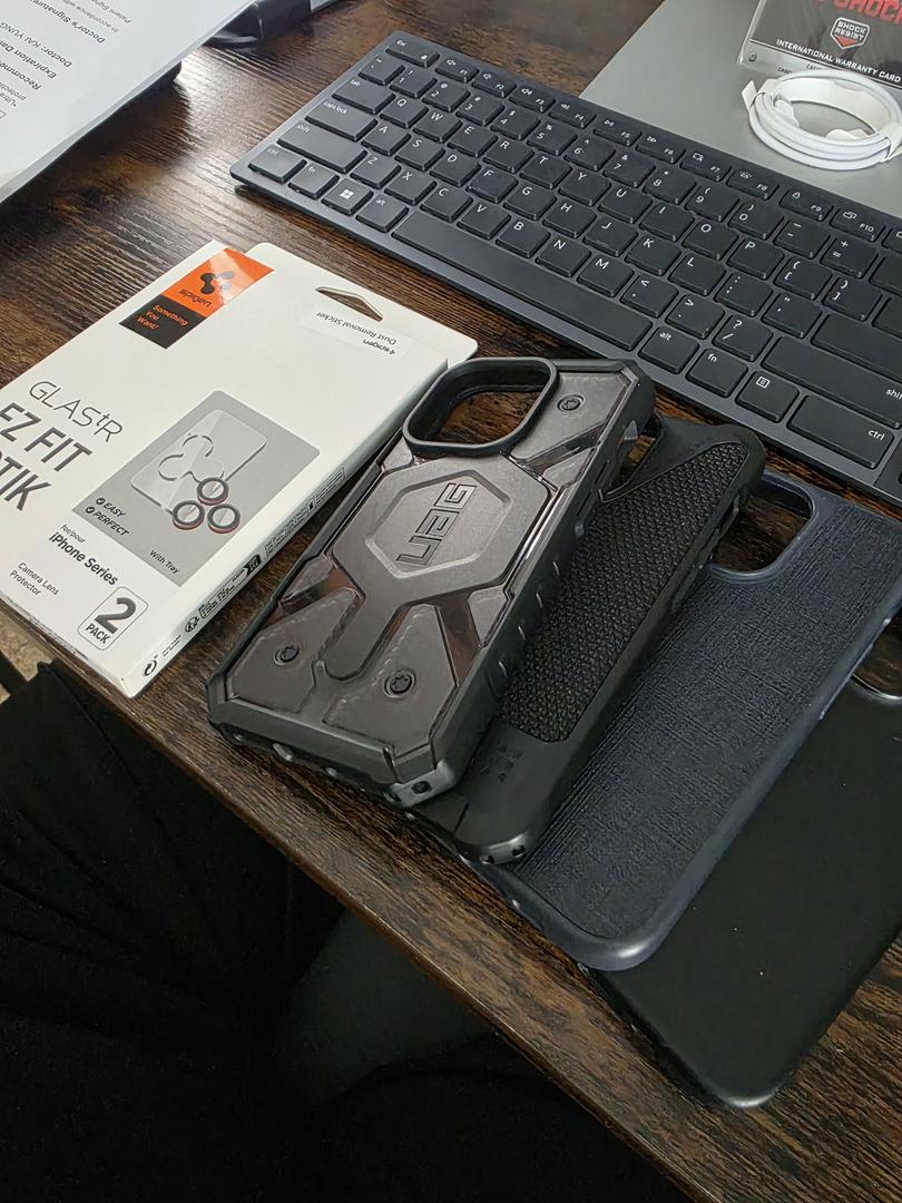 This item currently comes with a Floblab screen protector and a Spigen camera lens protector. Additionally, it will include two UAG cases, including an Incipio case and a Flolab leather case.