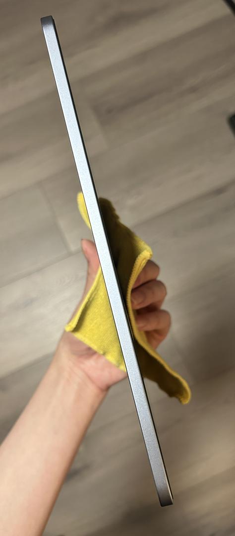 The iPad has been in a case since day 1 along with a screen protector. The iPad has never been dropped and has no scratches on the screen (only a few very faint scratches on the screen protector). Since it has been in a Speck folio case since day 1, the iPad has no scratches on the frame.