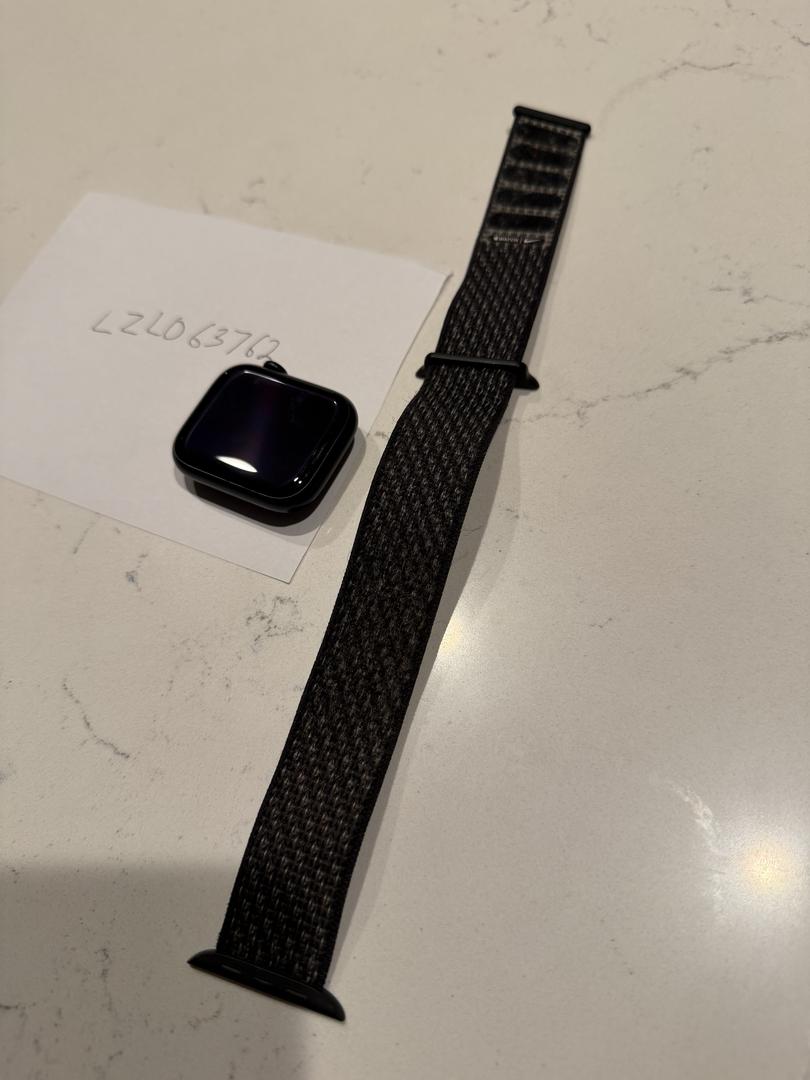 Apple Watch Series 8 45mm in black. Condition is good, light surface scratches only - normal wear and tear. Nothing you can feel when using the watch. Also including a charger and a used Nike sport loop band (more heavy wear on this) as shown.