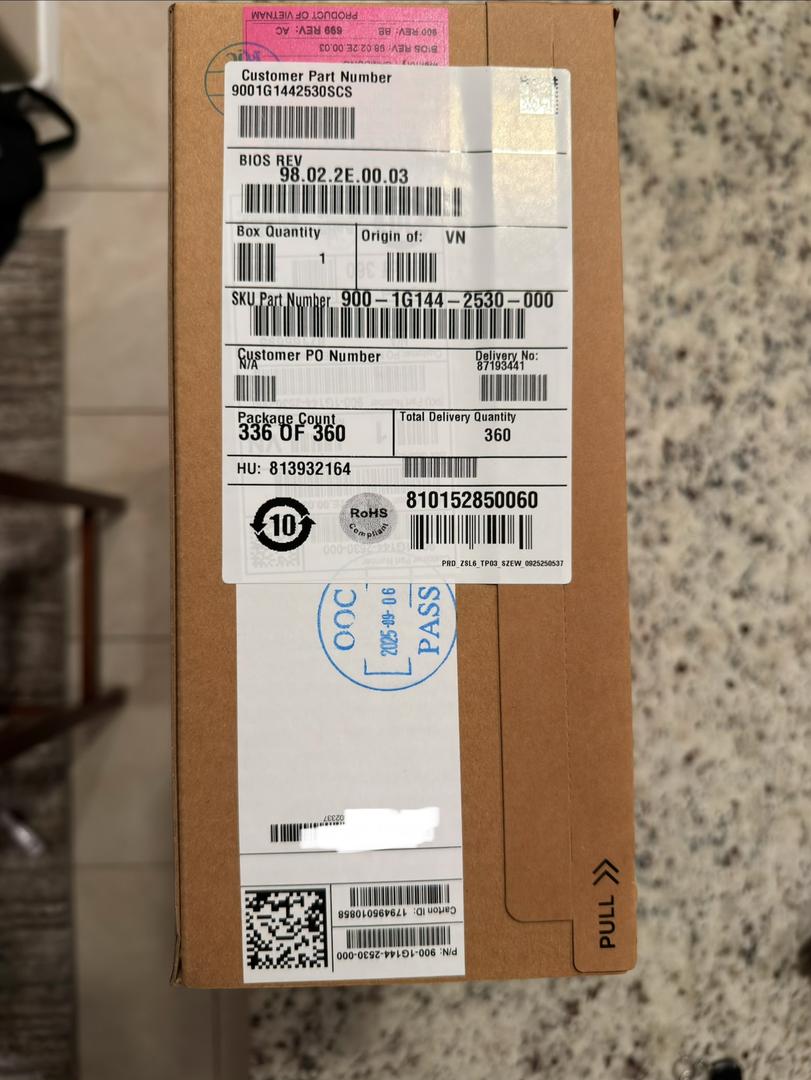 Brand new, factory sealed NVIDIA RTX 5090 Founders Edition (batch 336 of 360). Never opened, authentic NVIDIA shipping box with intact “PULL” tab and QA pass label. Ships double-boxed, insured, and signature required.
