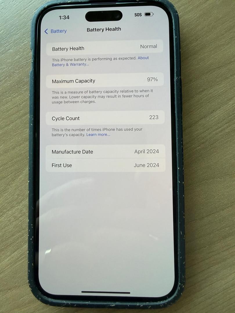 The only noticeable wear is some very small black paint is worn off the rim of a couple camera lenses. Lenses themselves are in excellent shape without scratches. Battery health listed as "Normal" in iPhone settings and maximum capacity is at 97% of a new iPhone.